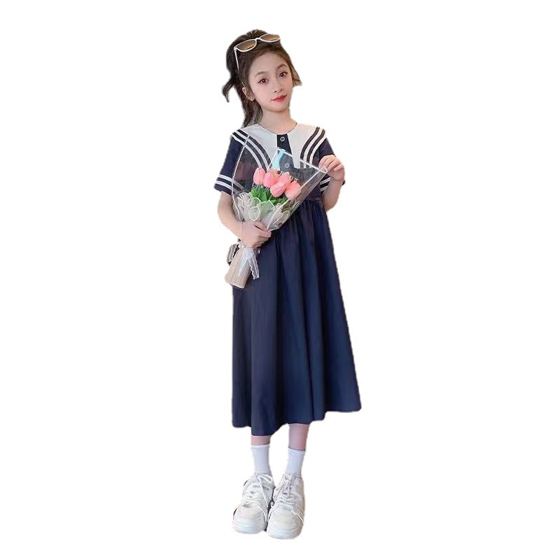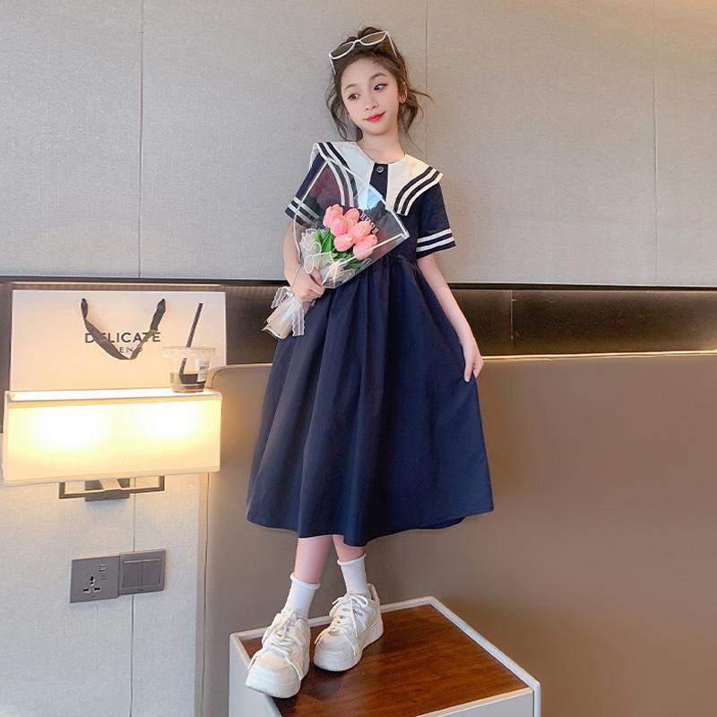 女童韩版百褶裙夏季新款中大童学院风女孩短袖百搭时髦连衣裙