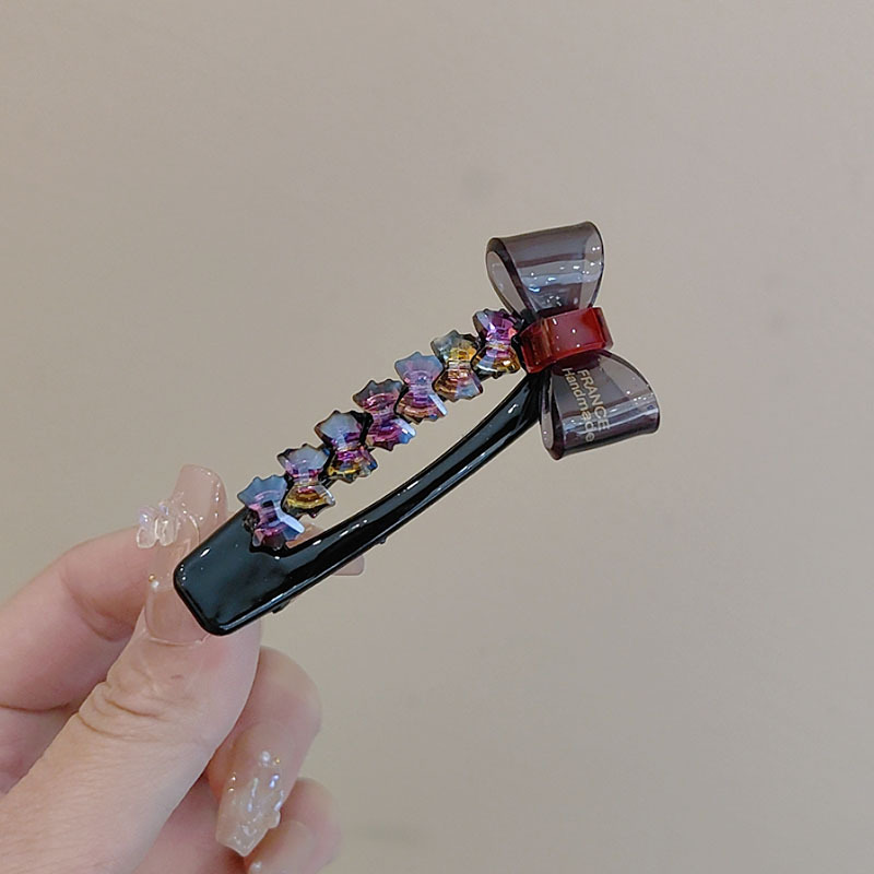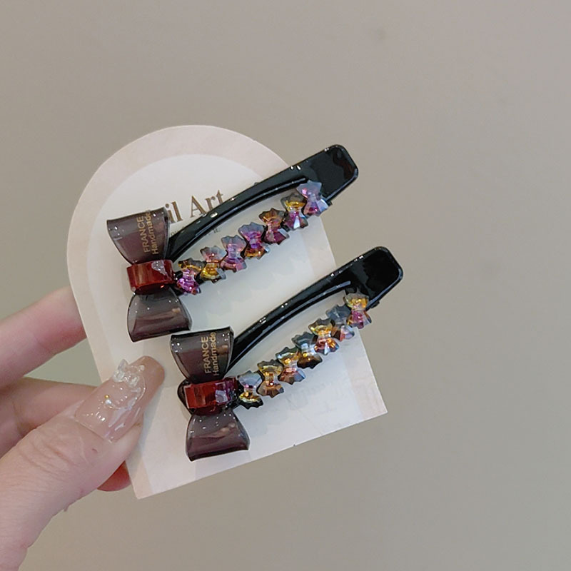 韩国东大门高级感少女彩色水晶蝴蝶结满钻质感刘海侧边夹鸭嘴夹女