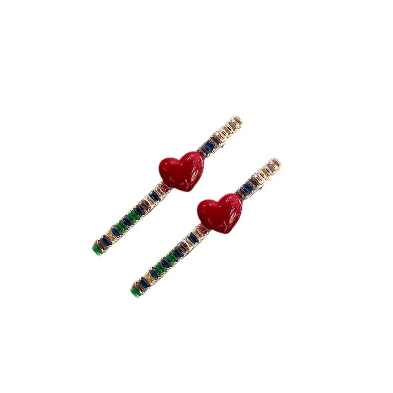 韩系气质爆闪彩钻红色爱心发夹一字夹气质百搭发卡侧边夹刘海夹子