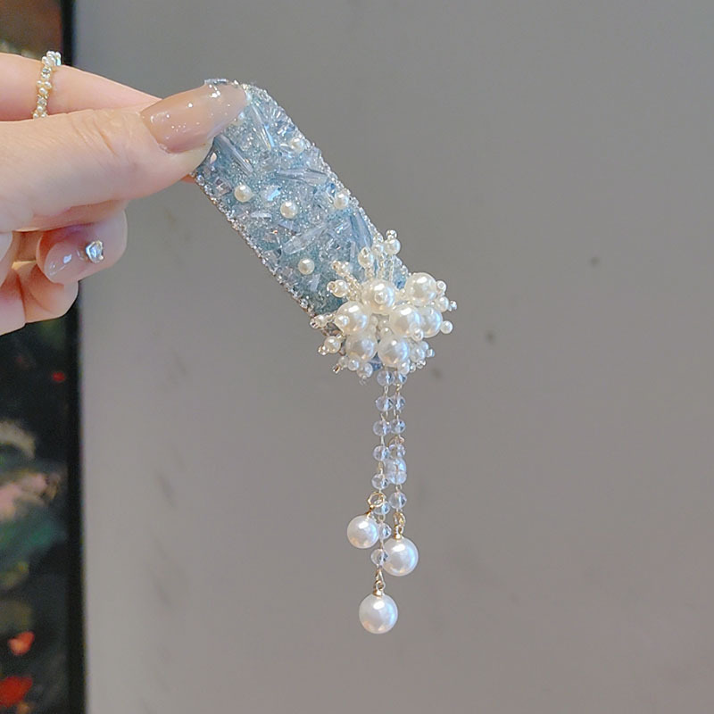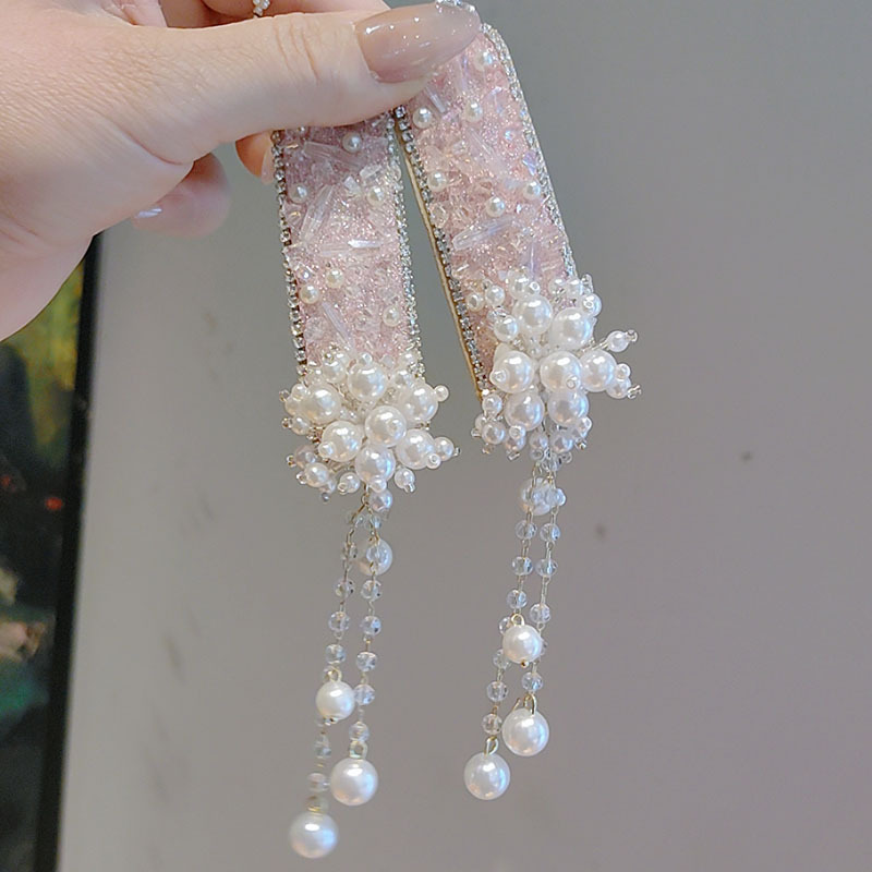 气质珍珠流苏水钻发夹女!超仙刘海夹气质侧边夹盘发器女小众卡子
