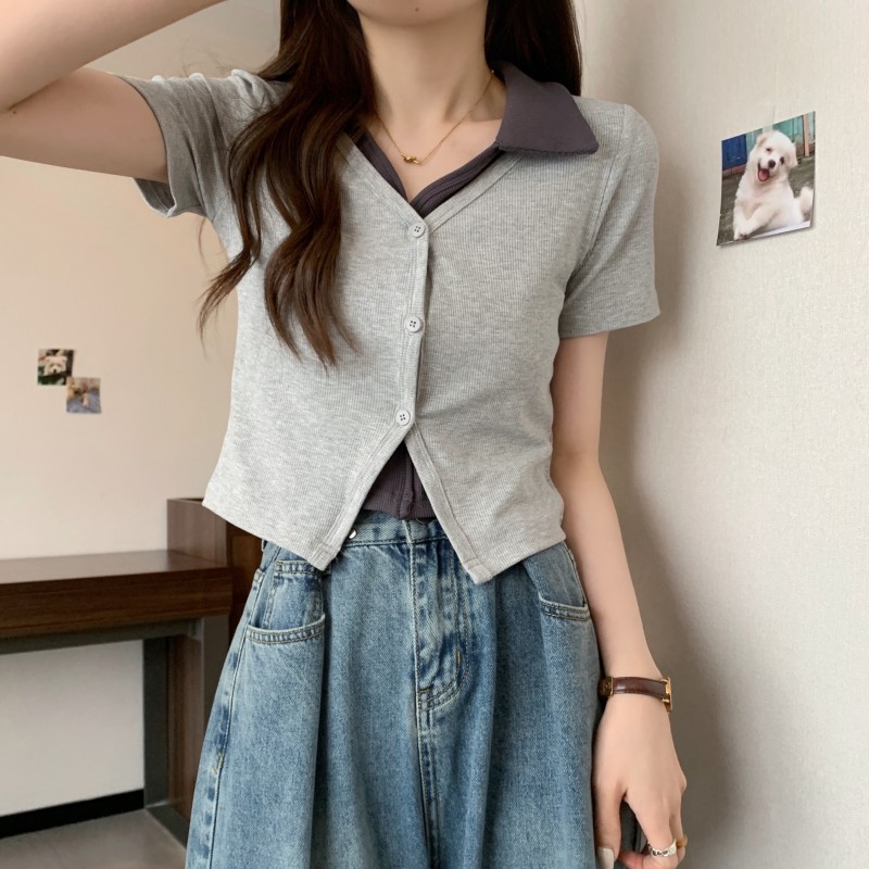 独特别致美式复古甜辣妹短款polo领衫上衣设计感小众短袖t恤女夏