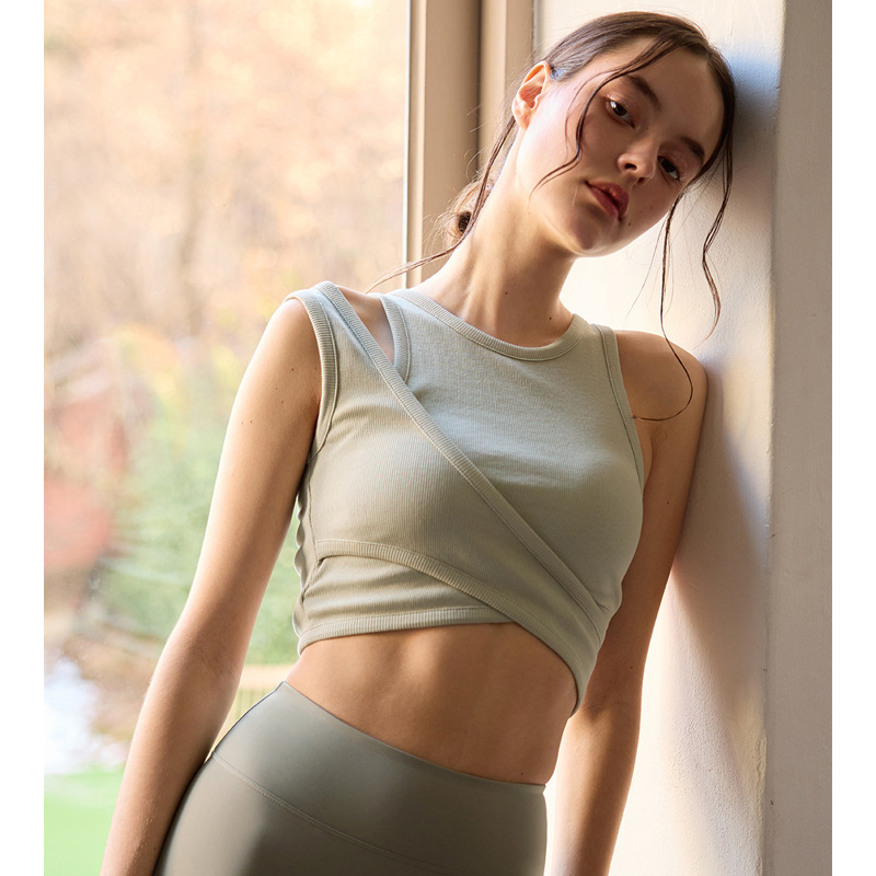 夏季新款修身螺纹瑜伽服背心运动上衣带胸垫性感交叉外穿宽肩背心