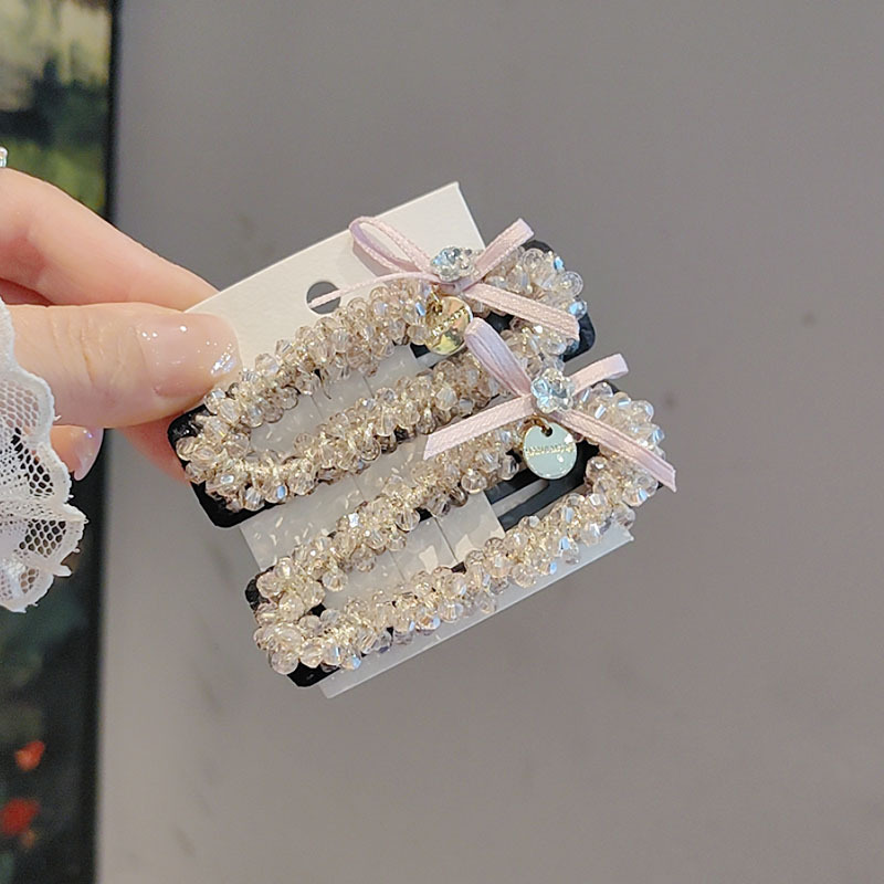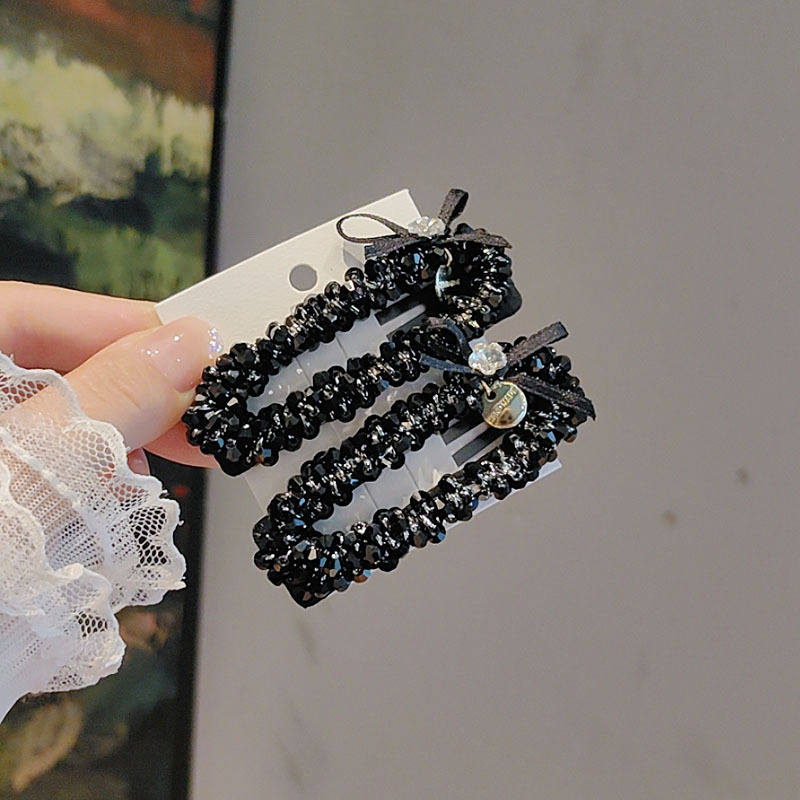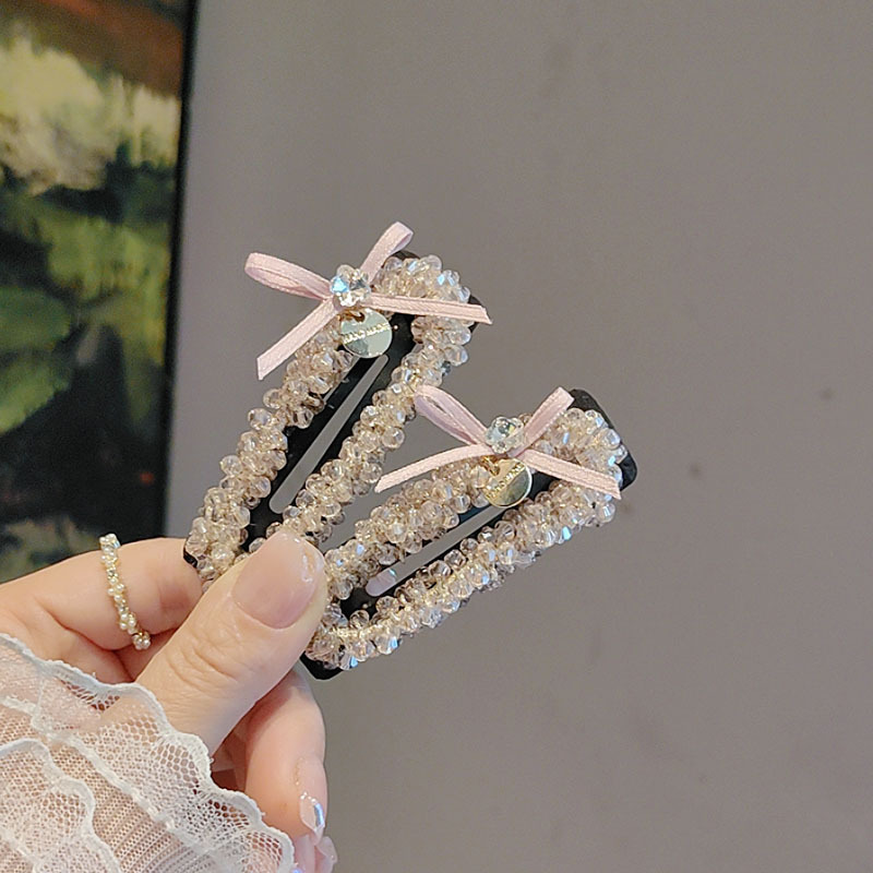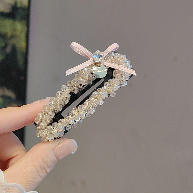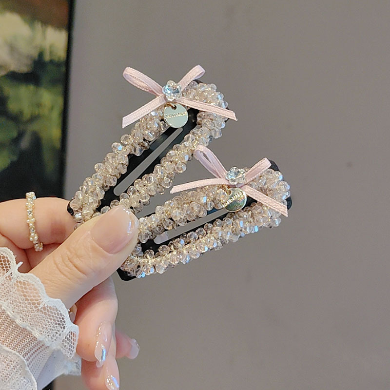 韩国水晶蝴蝶结发夹法式优雅前额刘海碎发夹简约侧边夹一字发卡子