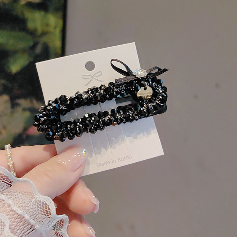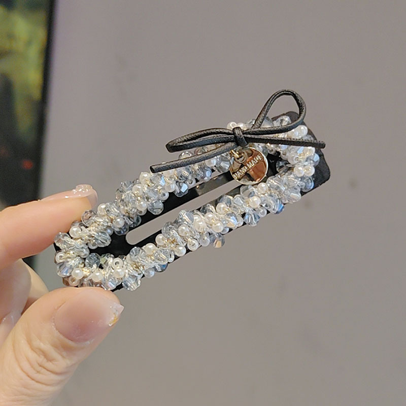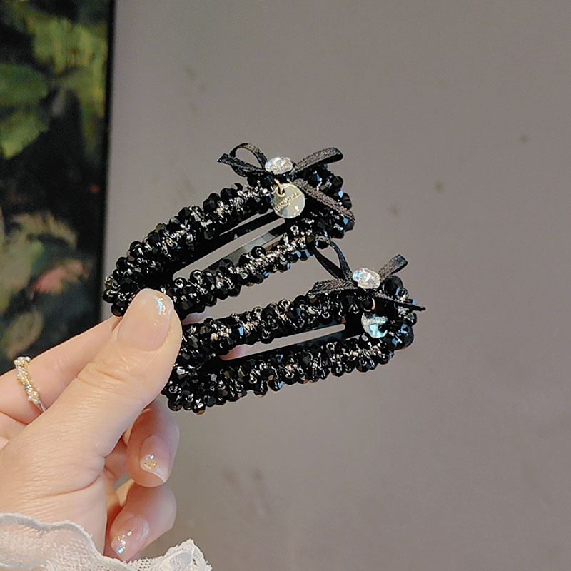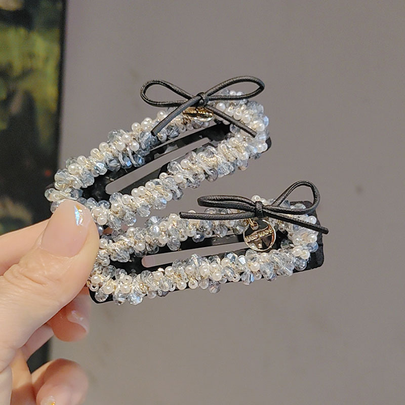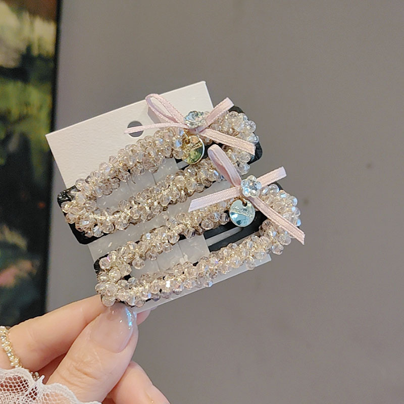 韩国水晶蝴蝶结发夹法式优雅前额刘海碎发夹简约侧边夹一字发卡子