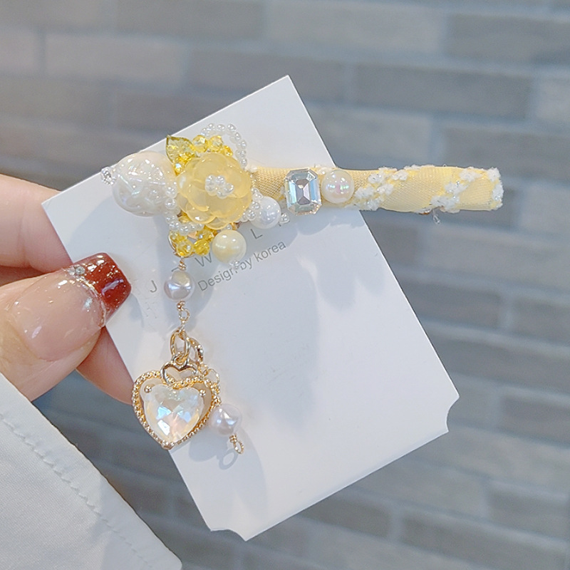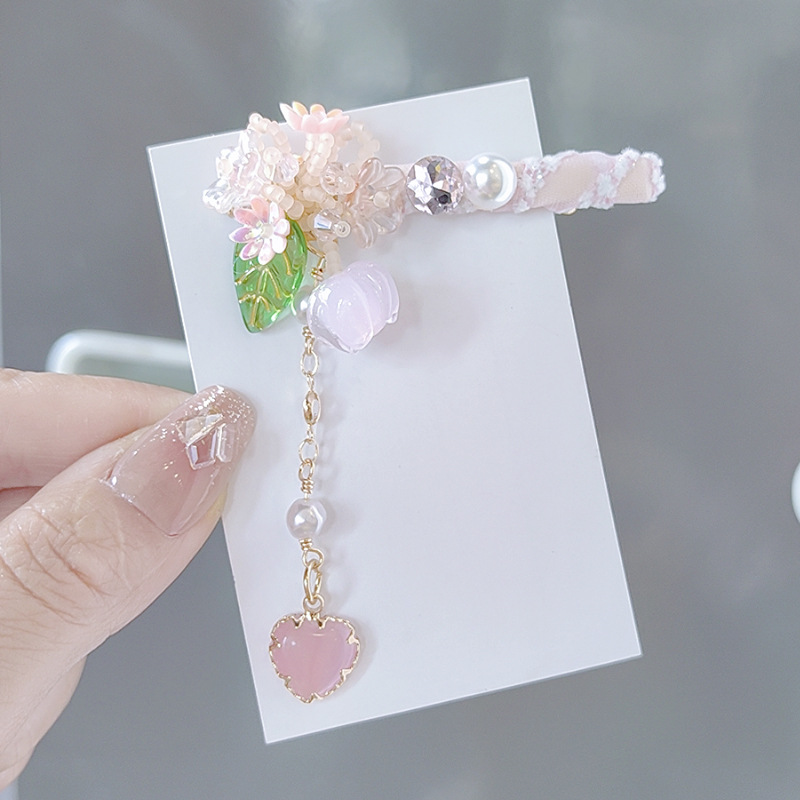 高级感珍珠闪钻流苏玫瑰花侧边夹鸭嘴夹精致发饰女轻奢超仙一字夹
