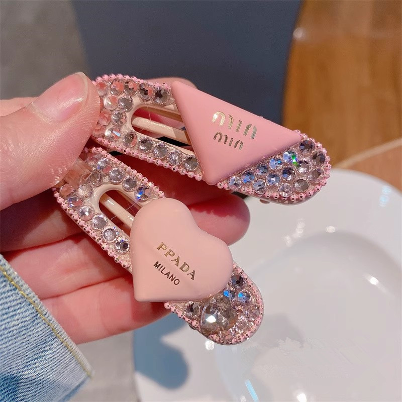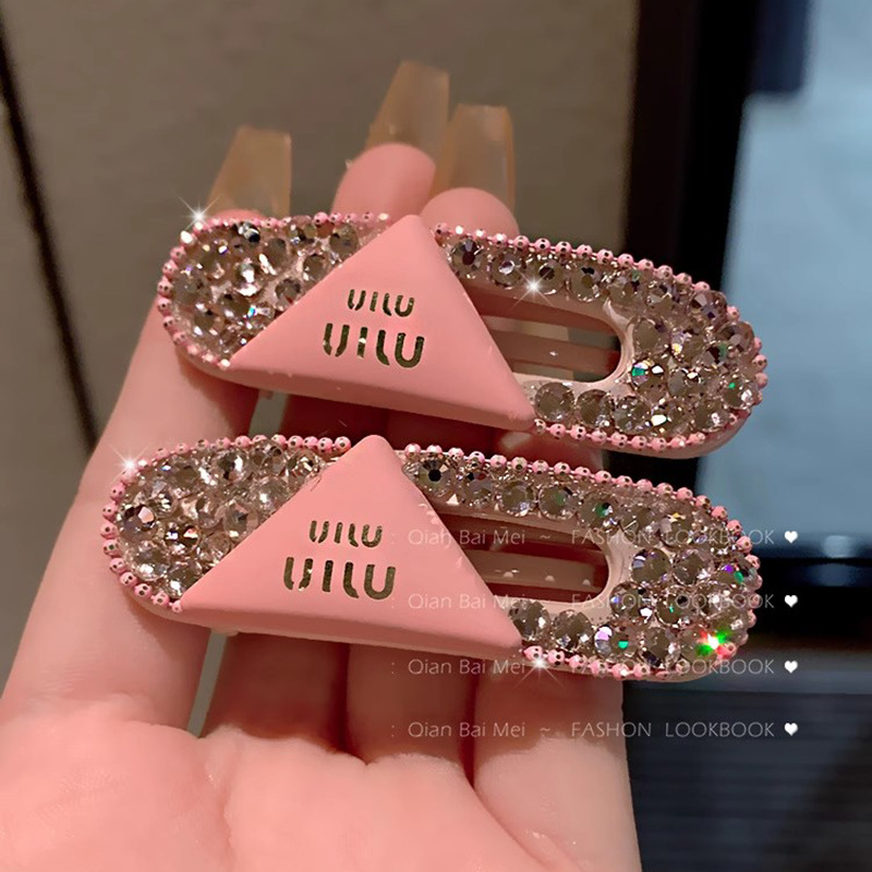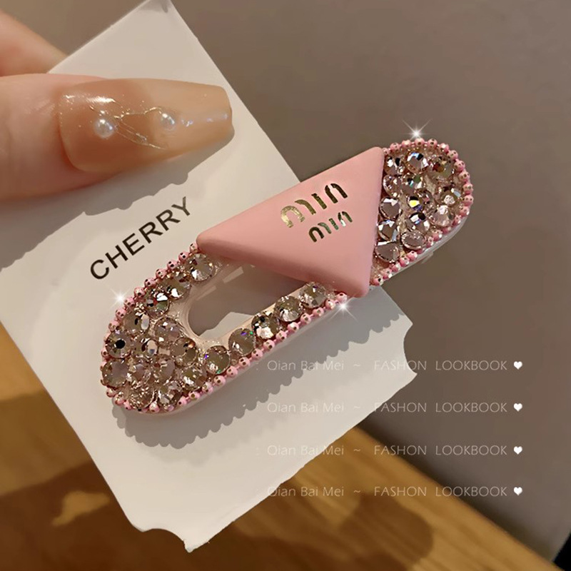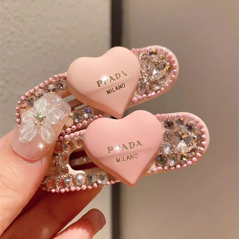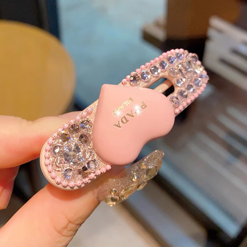 韩国粉水晶小香风轻奢字母爱心发夹鸭嘴夹侧边刘海碎发夹甜美发卡