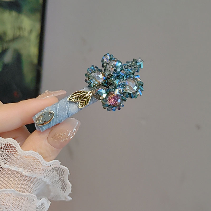 韩国手工串珠水晶一字夹气质高级感侧边刘海夹发卡鸭嘴夹精致优雅