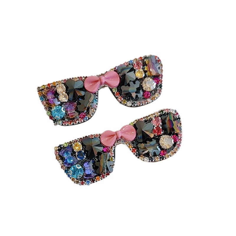 法式超闪满钻彩钻蝴蝶结眼镜发夹刘海bb夹少女侧边发卡发饰鸭嘴夹