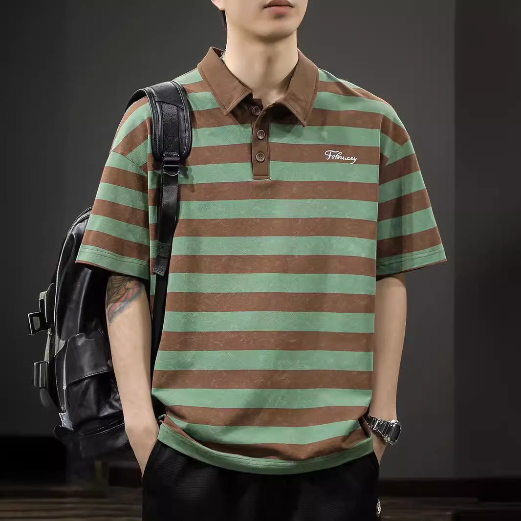 夏季新款条纹短袖Polo衫男宽松大码休闲保罗衫痞帅半袖体恤潮