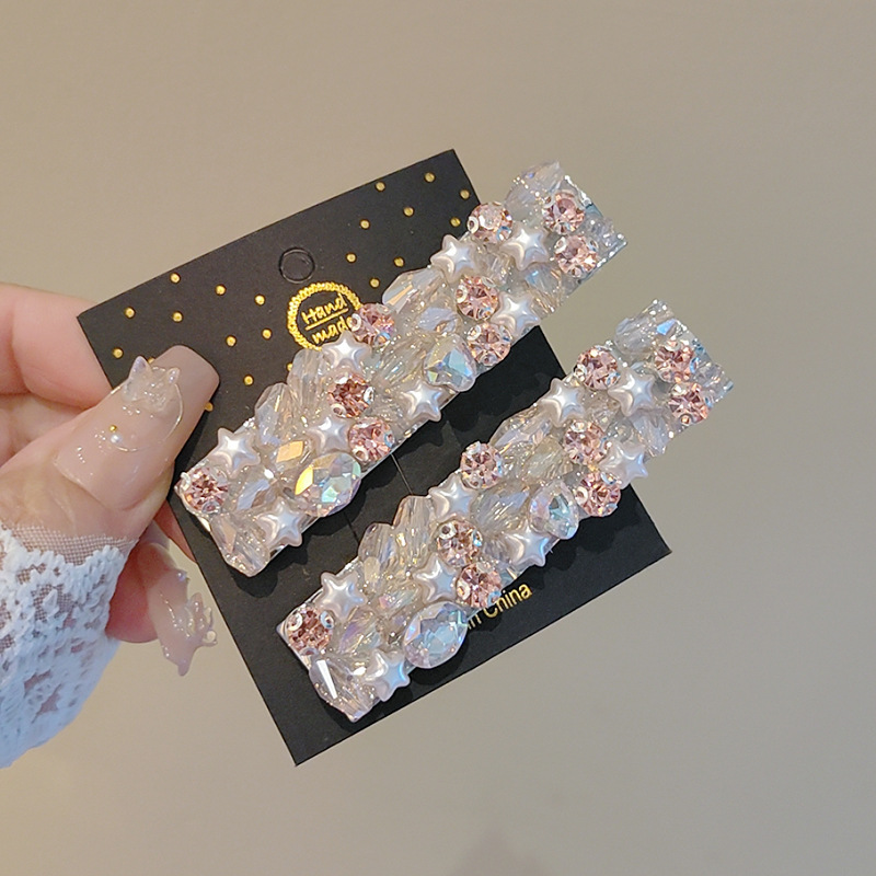 韩国发饰头饰小众饰品ins风高级感粉色鸭嘴夹刘海夹粉色镶钻发夹