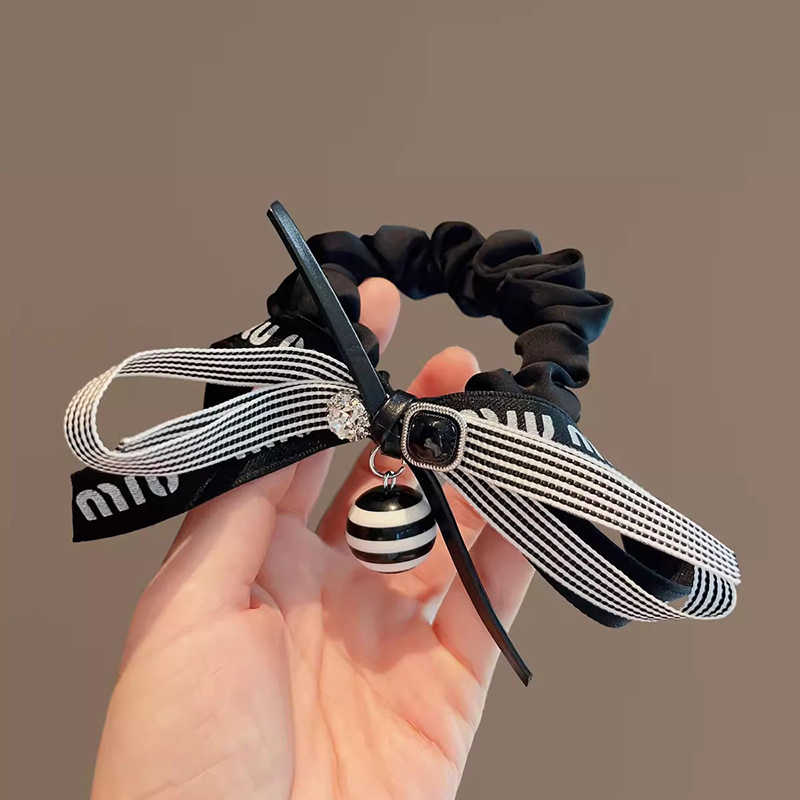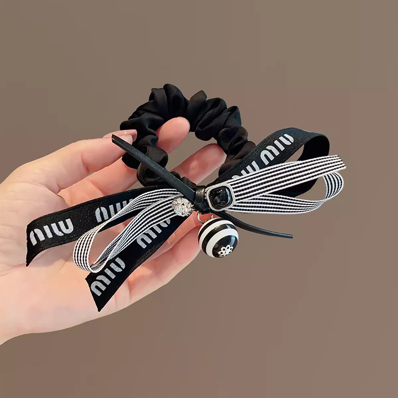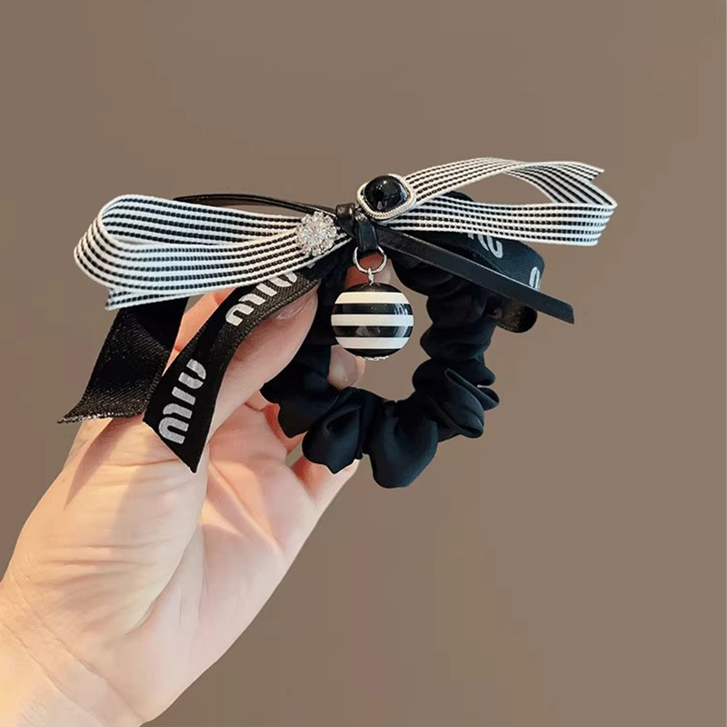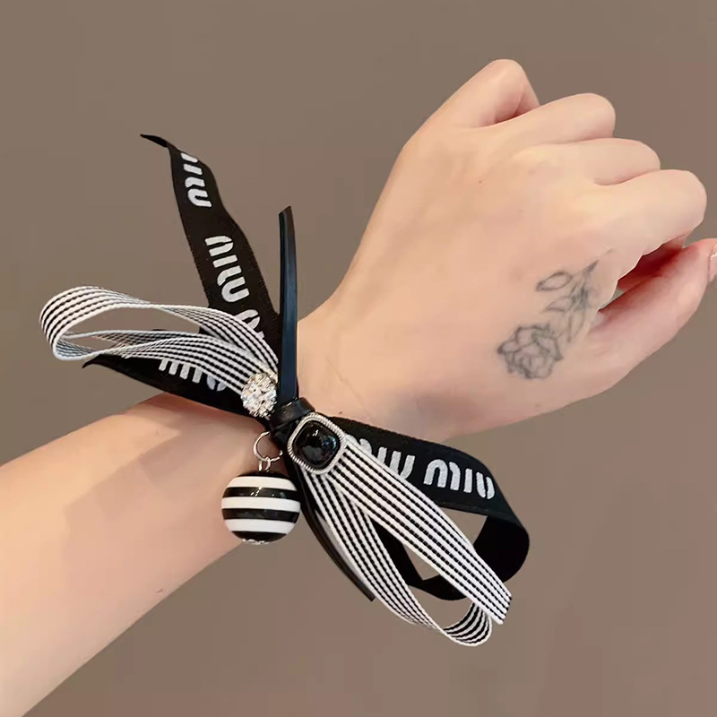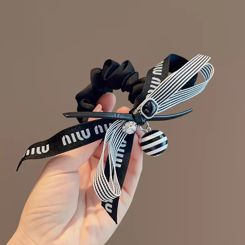 法式复古黑色条纹蝴蝶结大肠发圈低马尾发绳女2025新款飘带头花