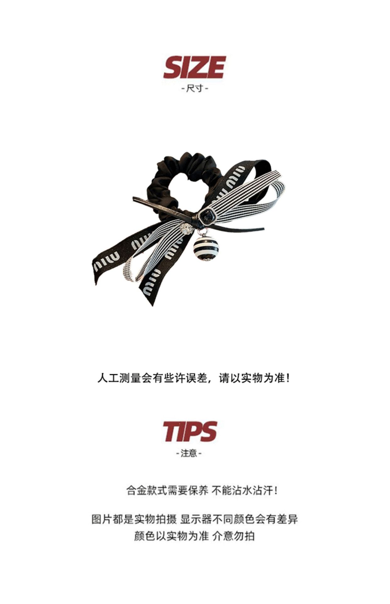 重工条纹蝴蝶结发绳