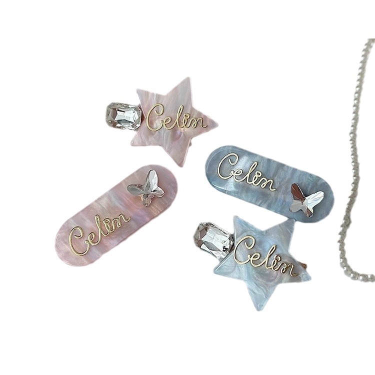 透明水钻五角星醋酸甜美侧边刘海夹女的鸭嘴发夹
