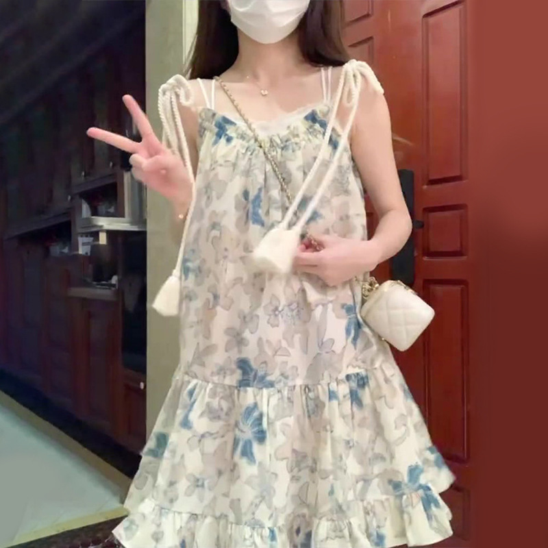 小个子仙女超仙甜美森系小清新宽松温柔风碎花吊带连衣裙子女夏季