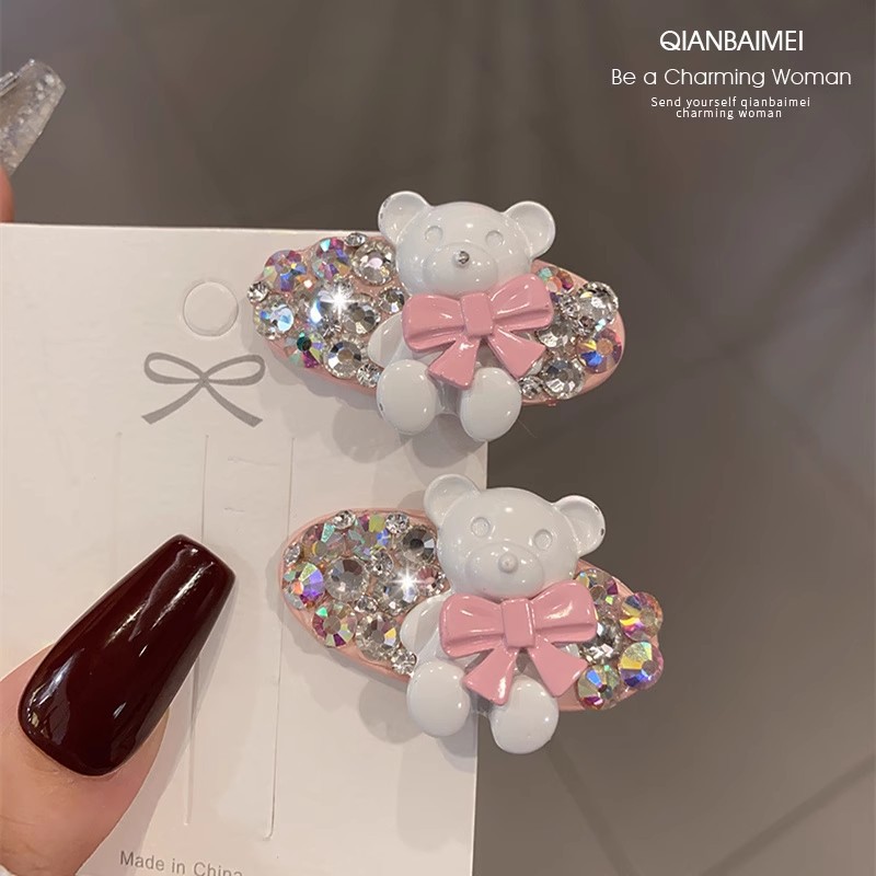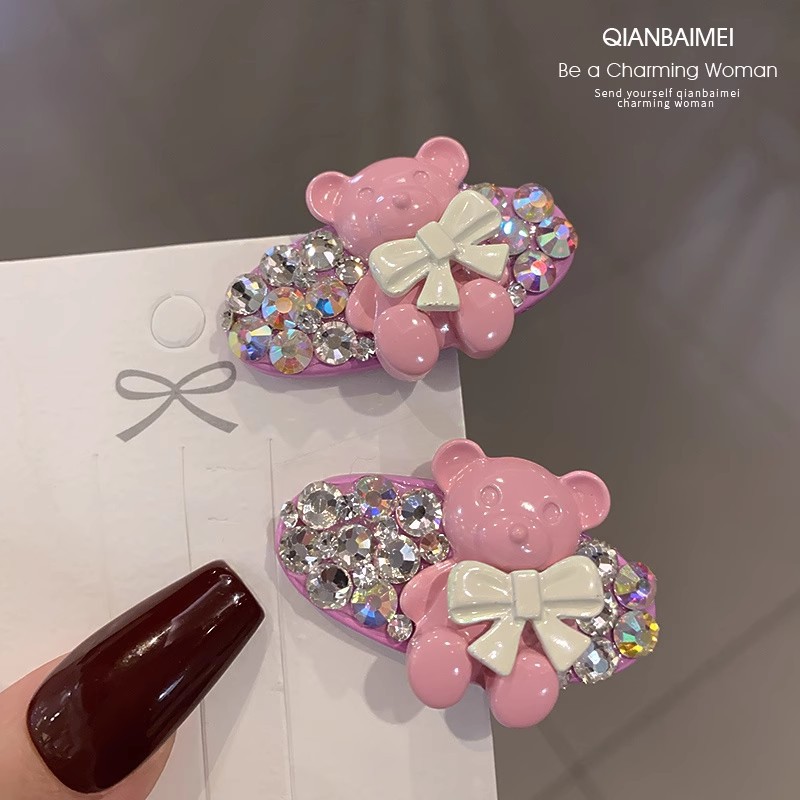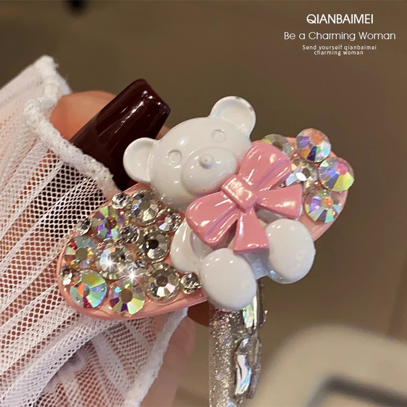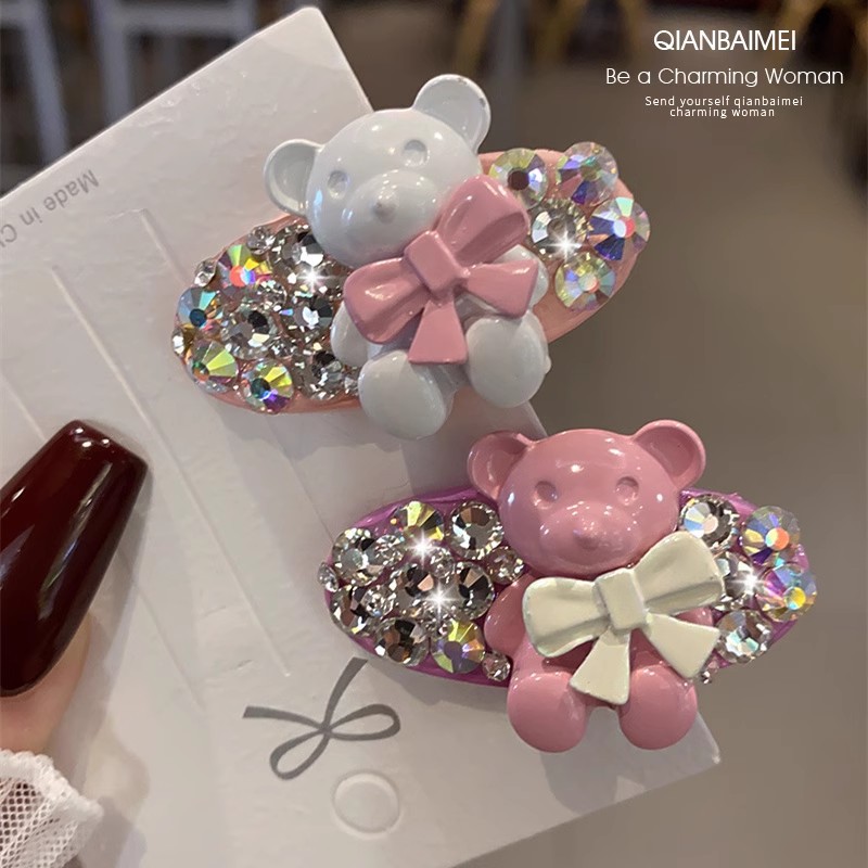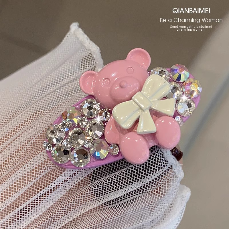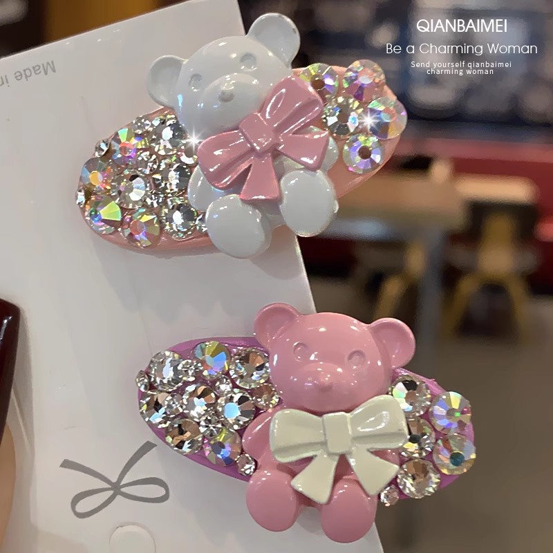 韩国彩色熊水钻发夹2025新款网红高端精致发饰刘海鸭嘴夹边夹发卡
