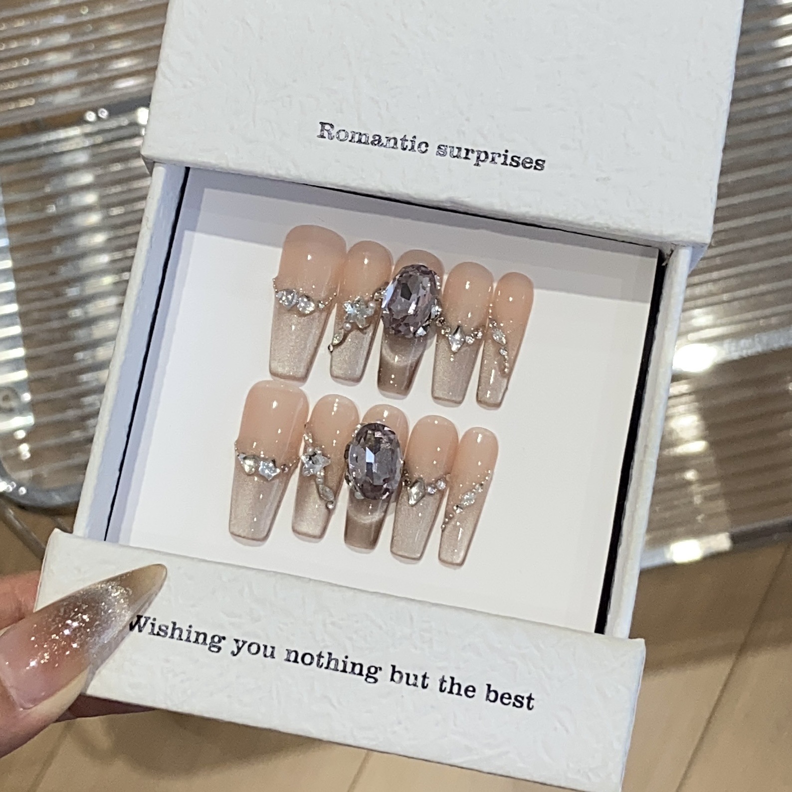 一只顾美甲厂 渐变微笑猫眼斜边碎钻温柔显白琉璃灰可拆卸穿戴甲
