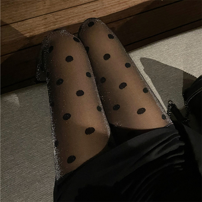 波点银丝连裤袜女性感珠光闪亮丝袜辣妹穿搭圆点黑丝袜子