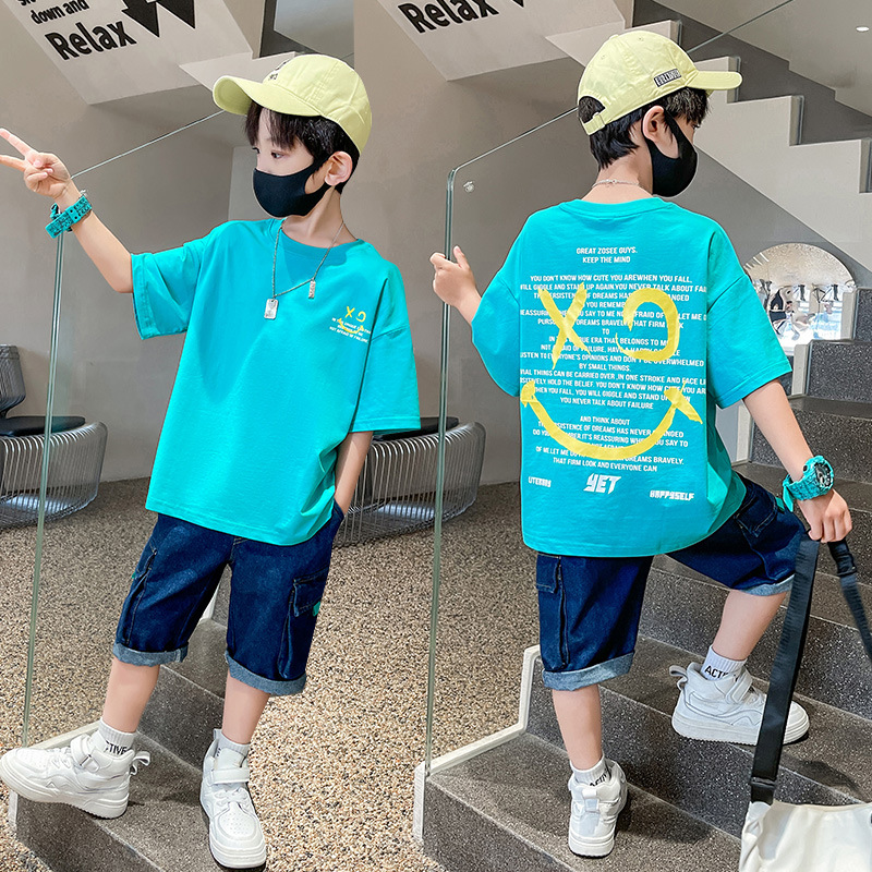夏潮牌中大童男童女童打底衫棉质宝宝短袖t恤衫卡通酷帅半袖上衣