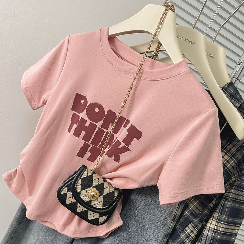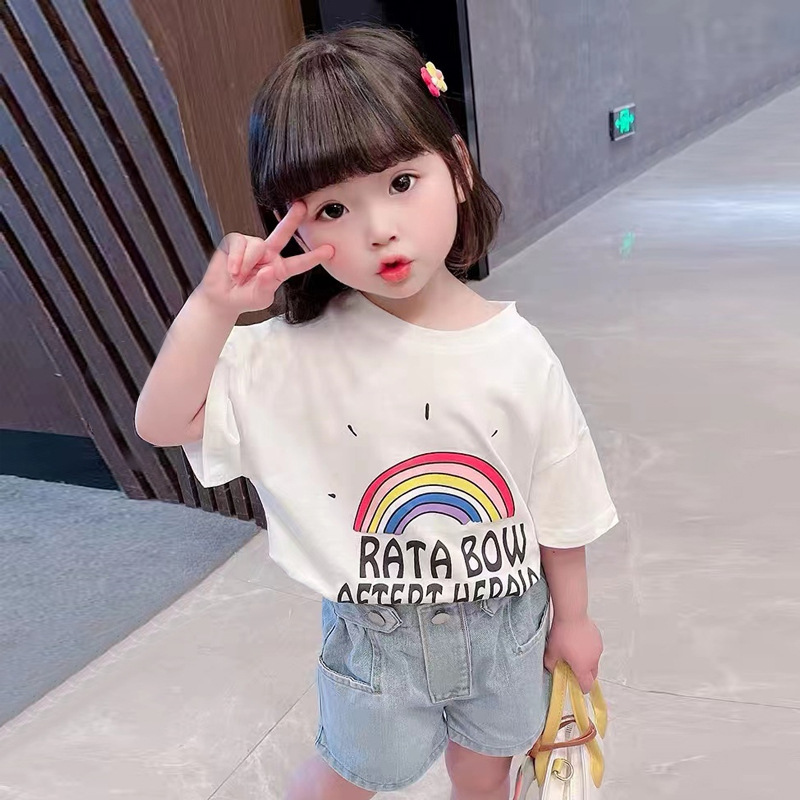 女童短袖纯棉洋气儿童t恤女童夏季宽松前后印花半袖上衣童装潮