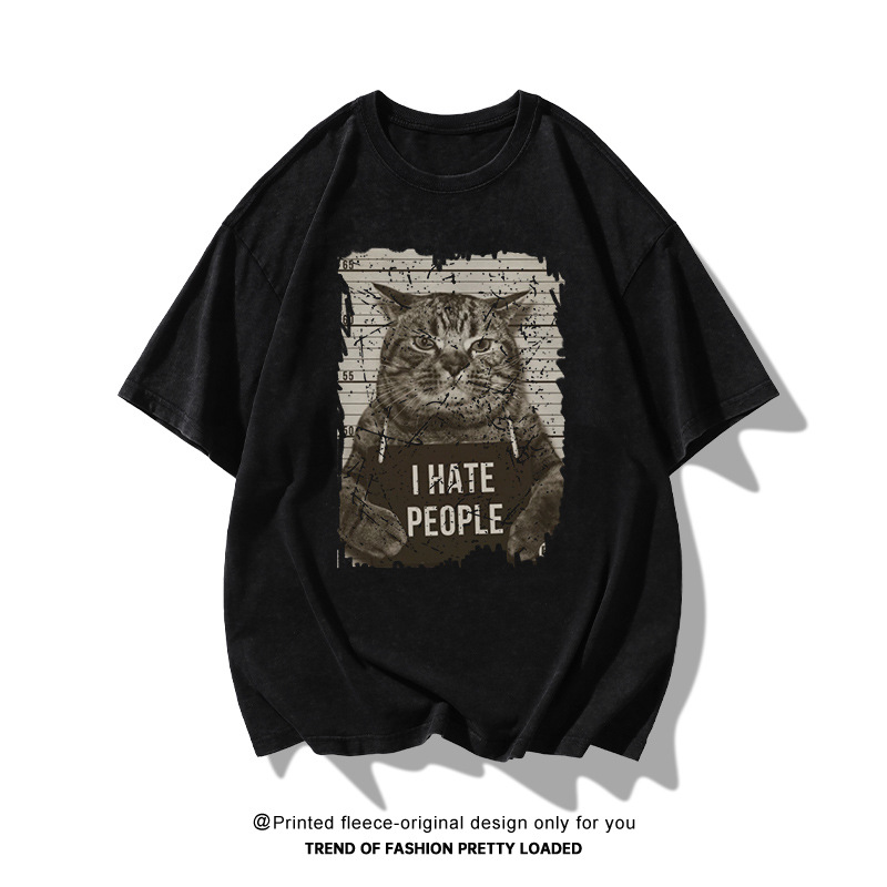 vintage美式高街做旧短袖t恤男士夏潮流卡通印花宽松情侣百搭tee