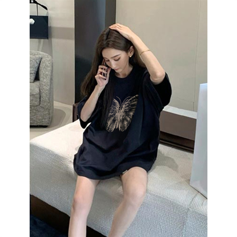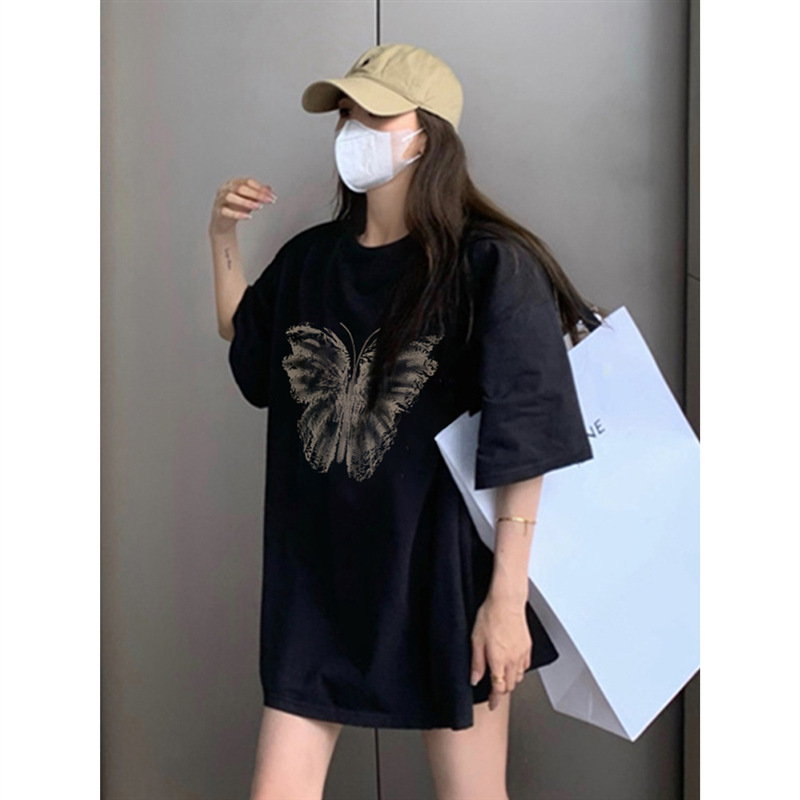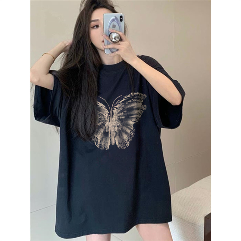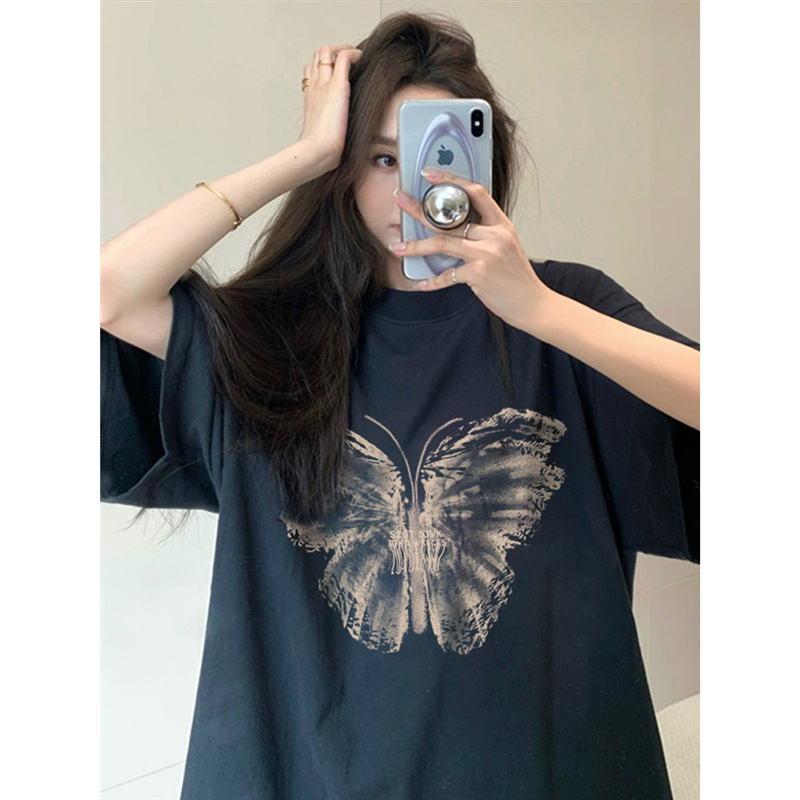 潮牌美式复古oversize正肩短袖t恤女夏季新款小众设计感上衣