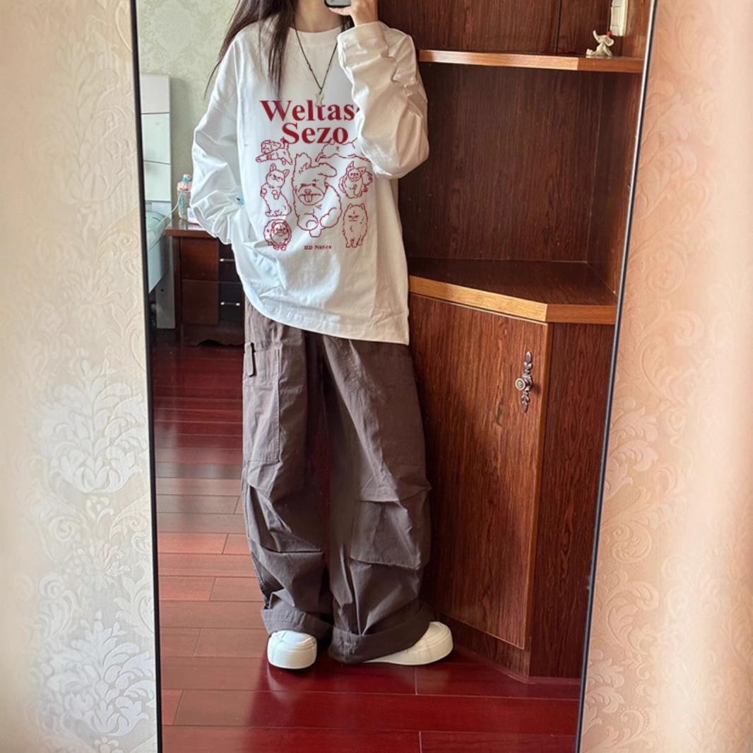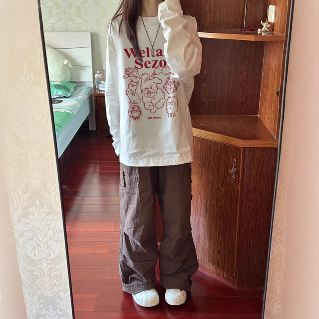 早秋chic长袖t恤卫衣女白色初秋美式春秋单穿宽松内搭打底衫上衣