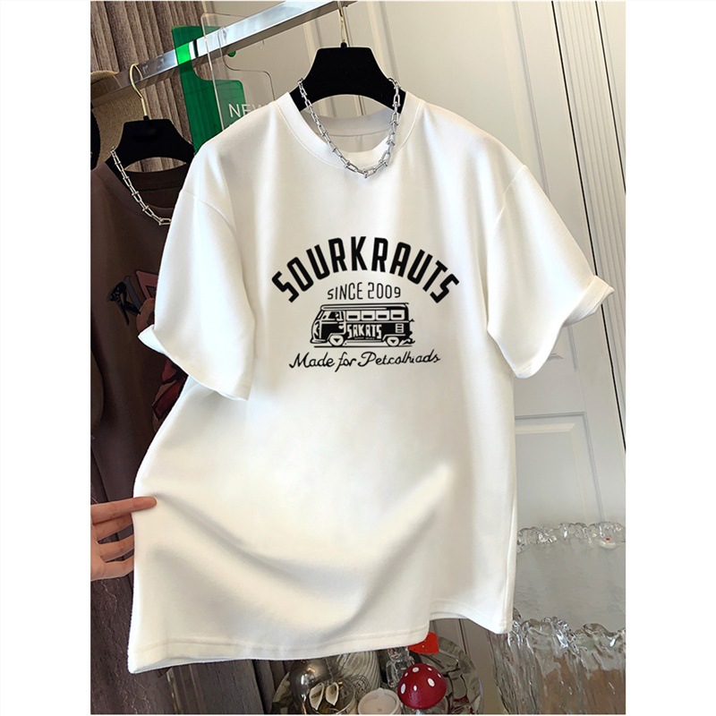 外贸 精梳纯棉短袖t恤女中长款宽松休闲白色半袖上衣打底衫夏季潮