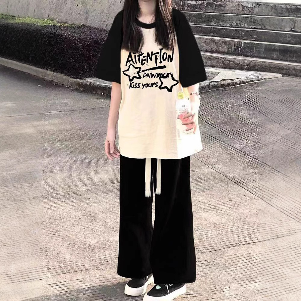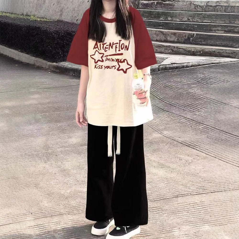 夏装纯棉盐系少女撞色短袖T恤高中初中学生休闲时尚宽松休闲ins潮