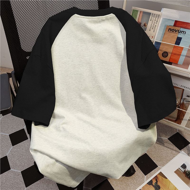 美式小众插肩袖2025夏季涂鸦纯棉短袖T恤女蜡笔小新印花大码上衣