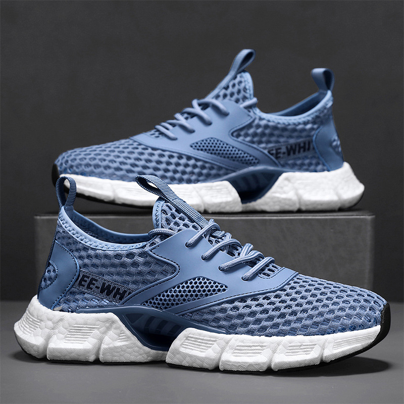 夏季男新款透气单网运动鞋软底跑步鞋青少年真爆米花潮鞋冷粘工艺