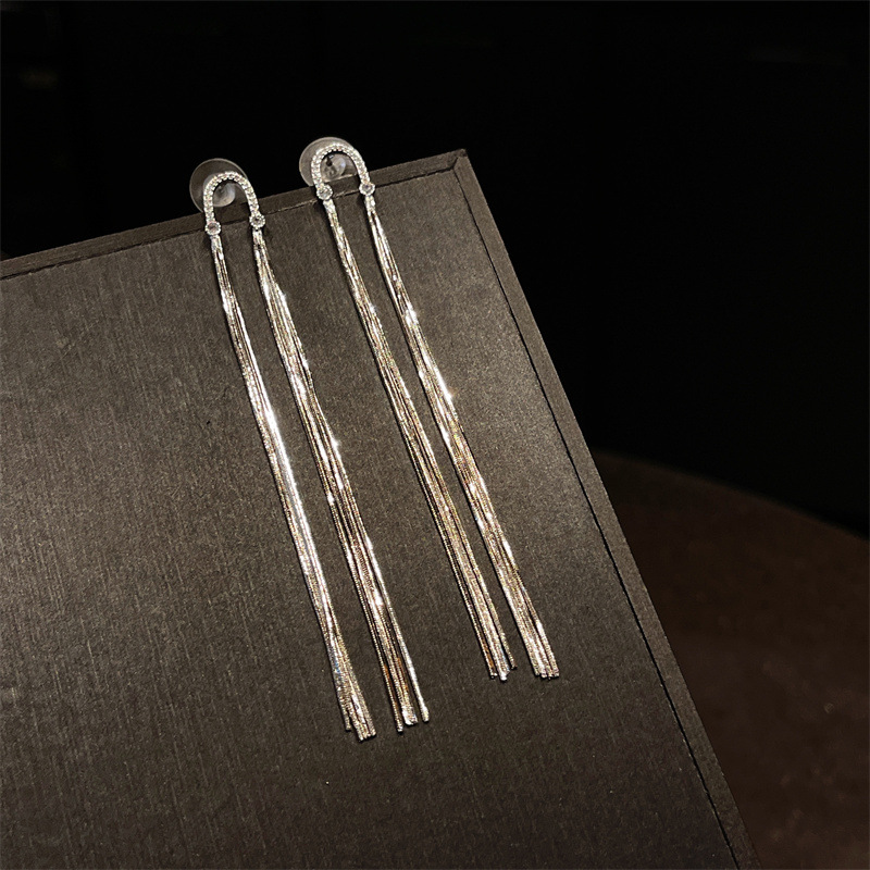 925银针东大门轻奢夸张长流苏耳环高级感气质批发耳坠女百搭抓链