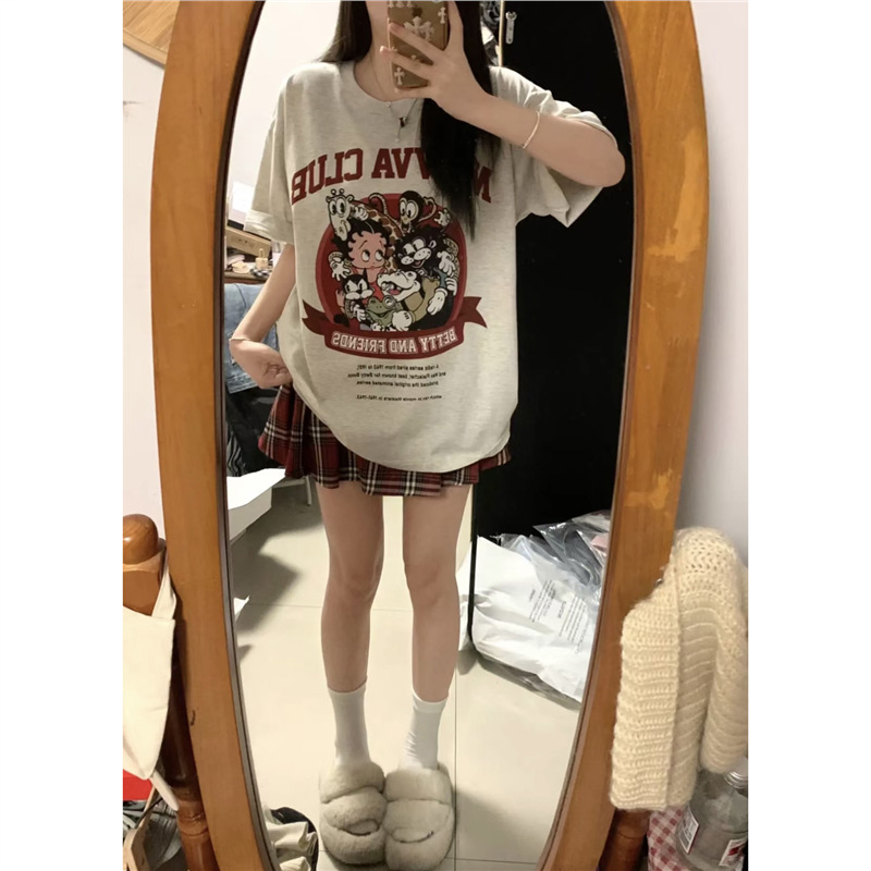 美式复古卡通贝蒂小姐纯棉短袖T恤女夏季宽松设计感小众上衣ins潮