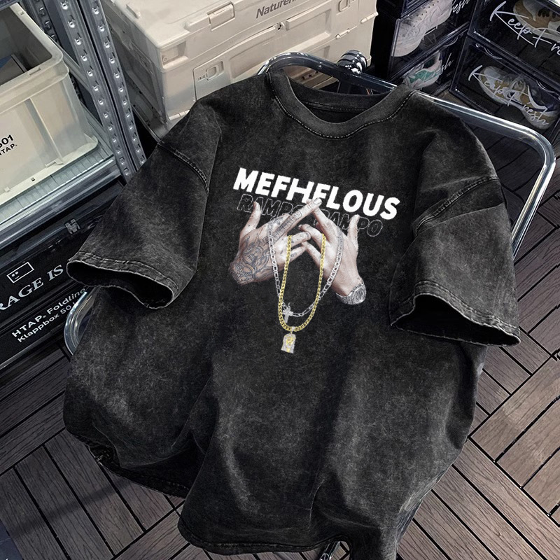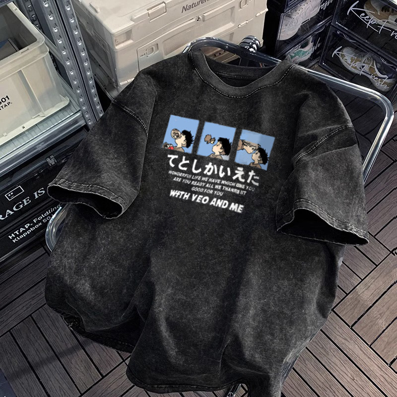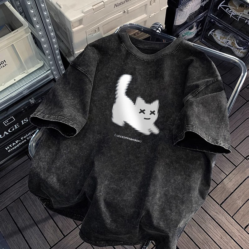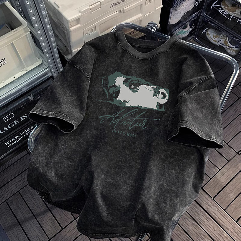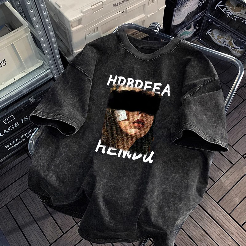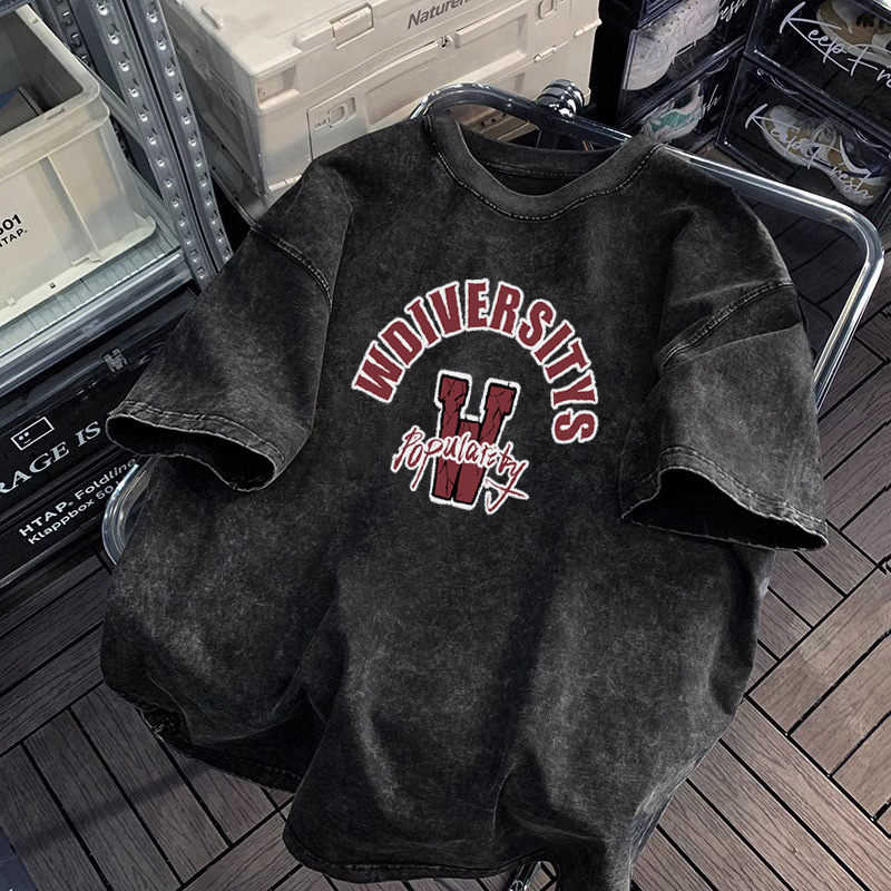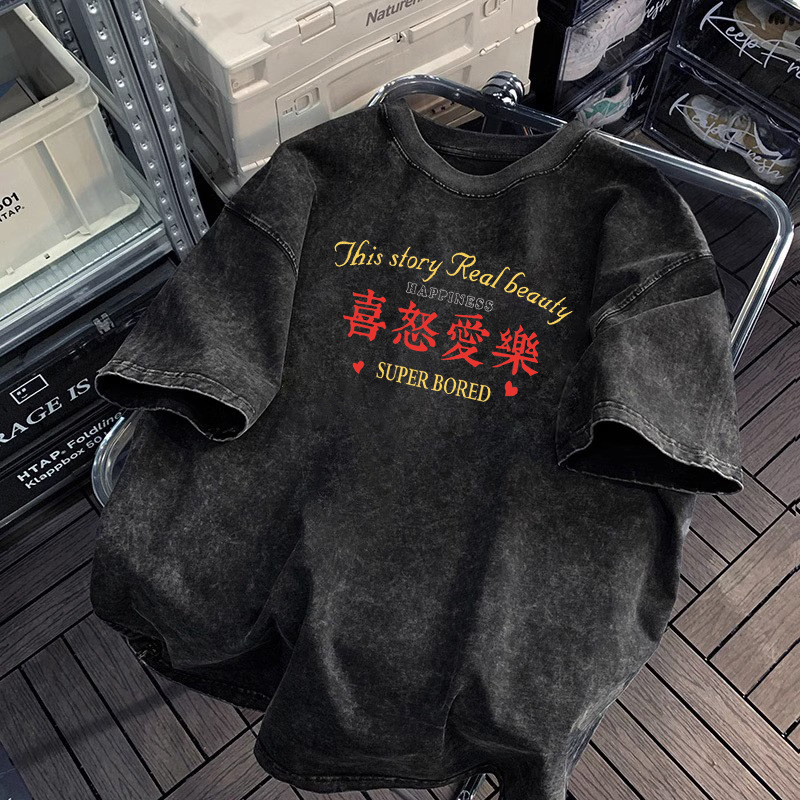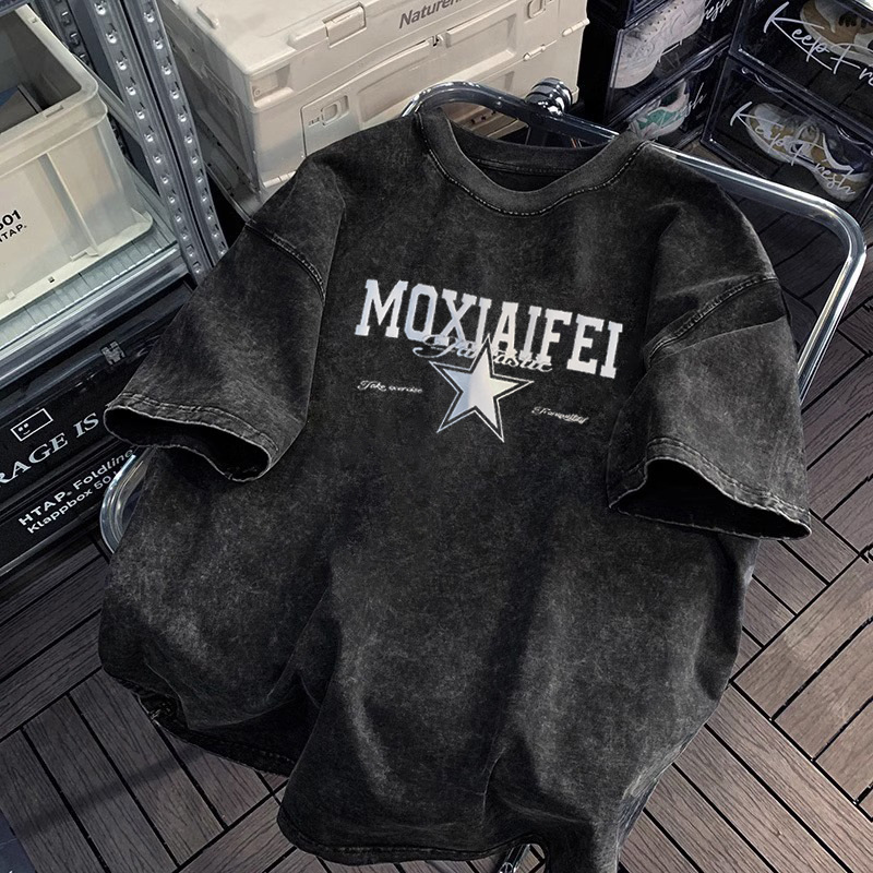 嘻哈风水洗做旧重磅短袖T恤男女夏季oversize复古潮牌宽松慵懒感