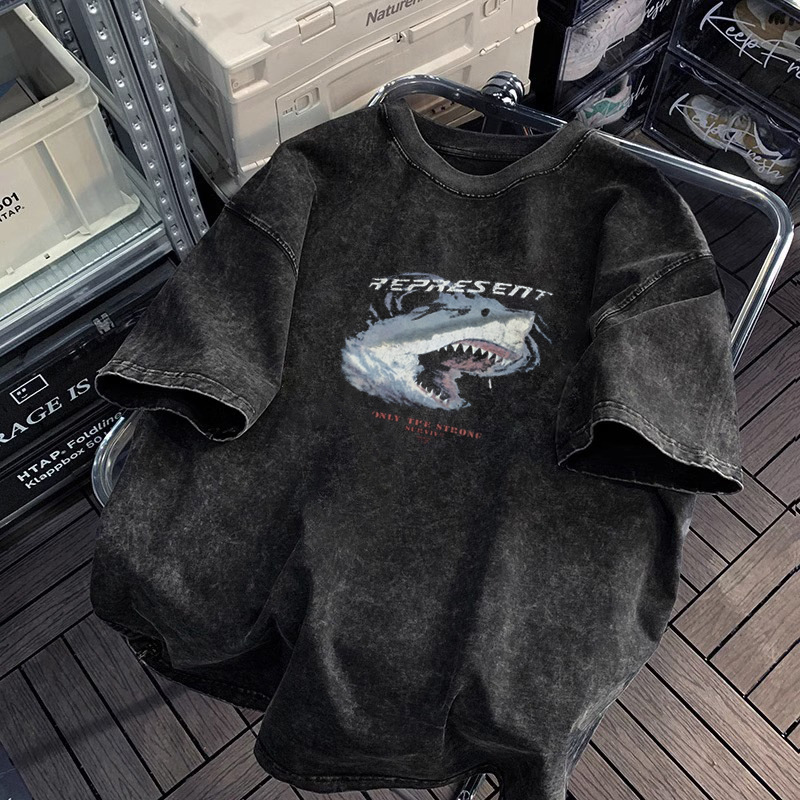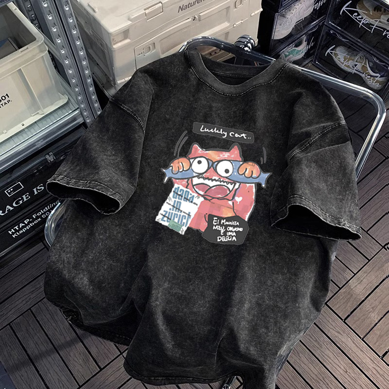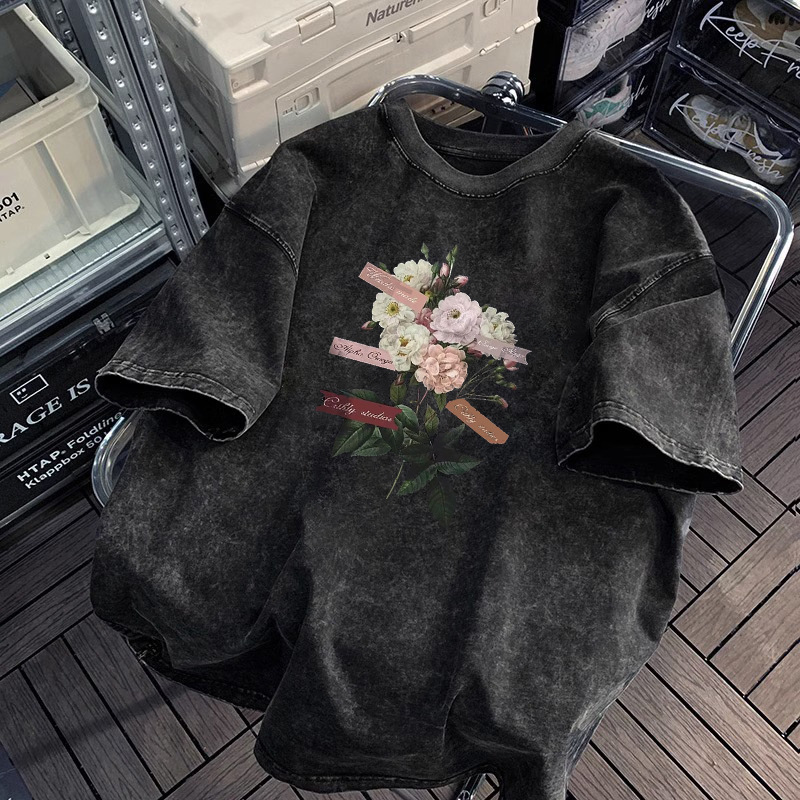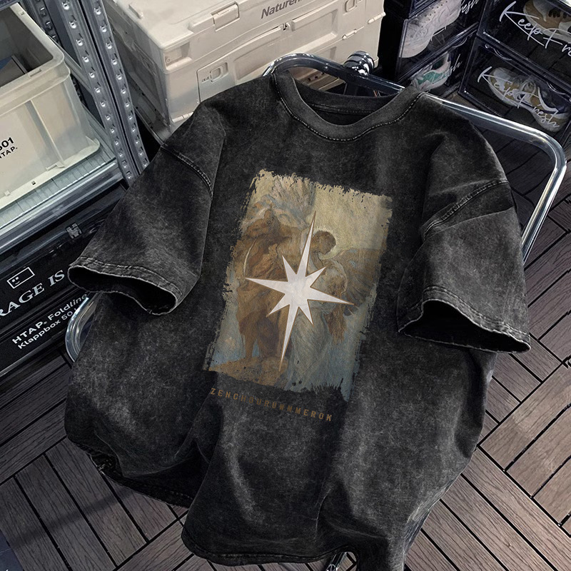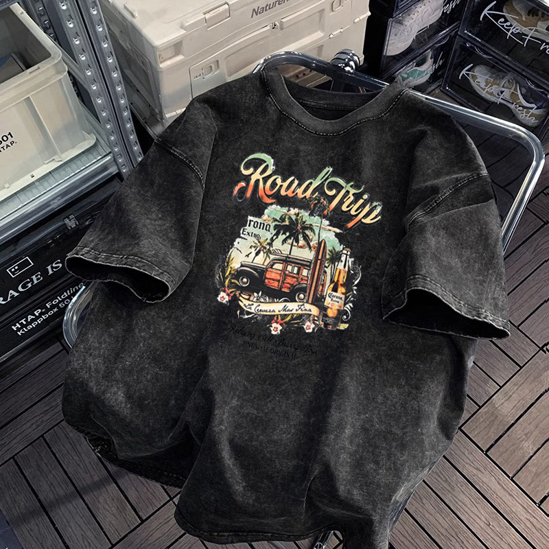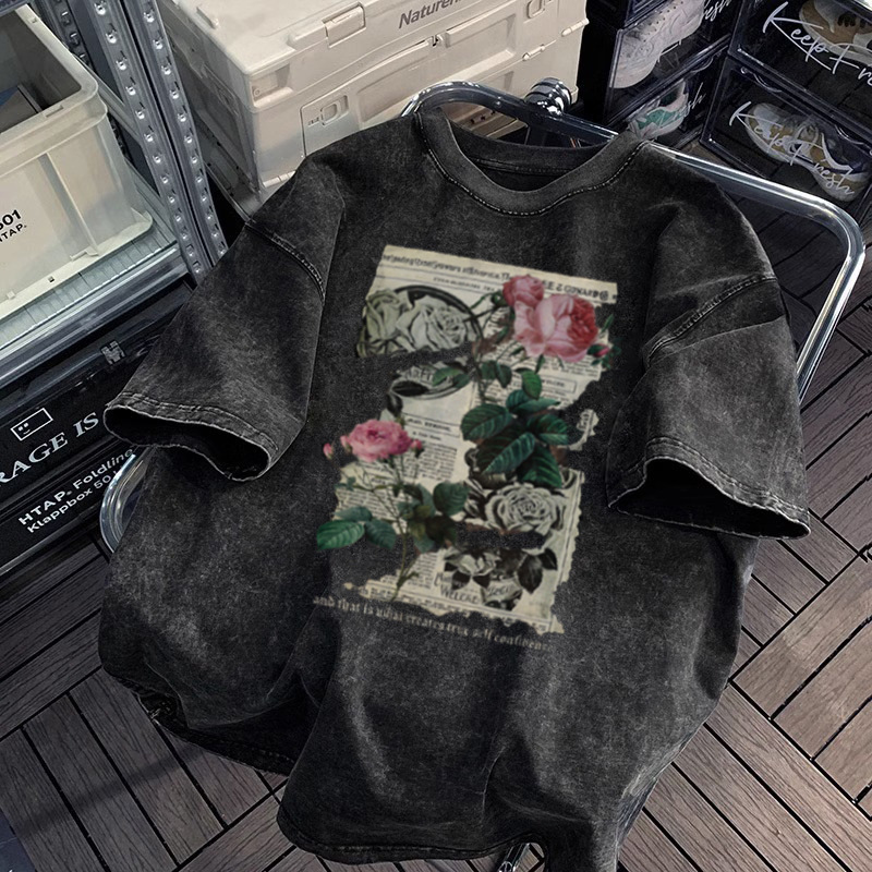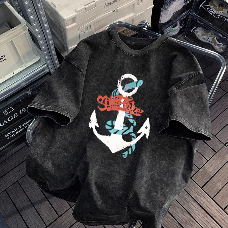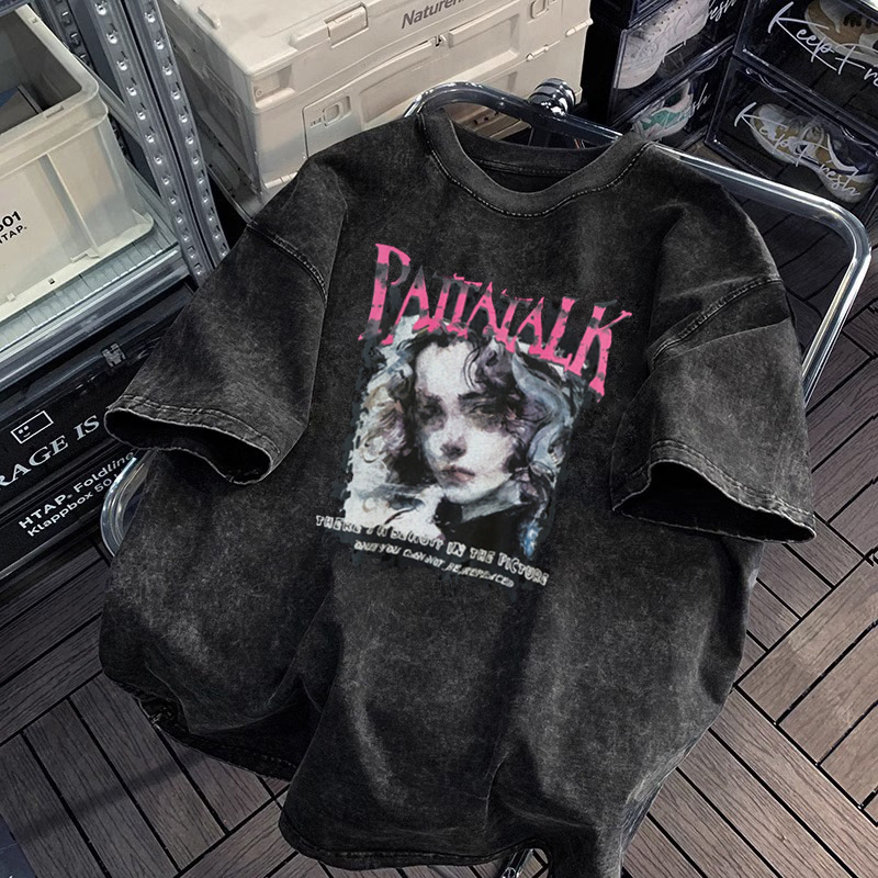嘻哈风水洗做旧重磅短袖T恤男女夏季oversize复古潮牌宽松慵懒感