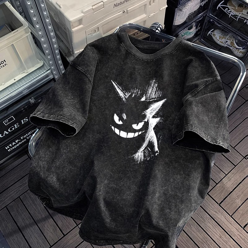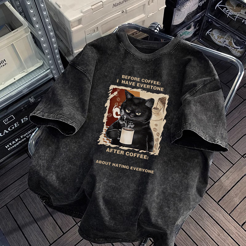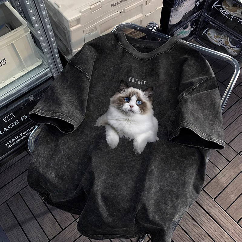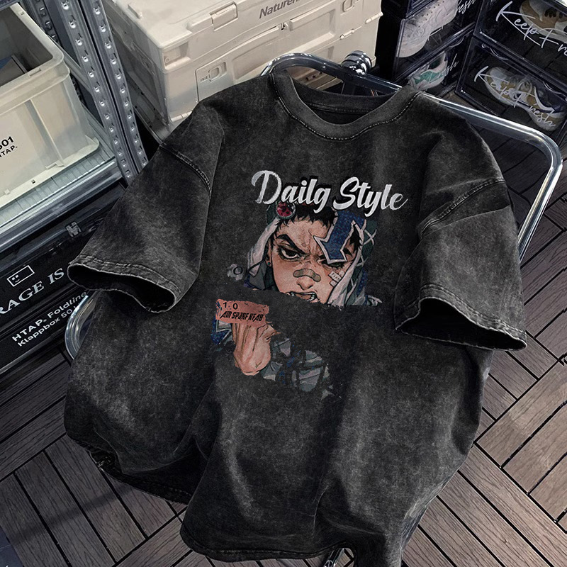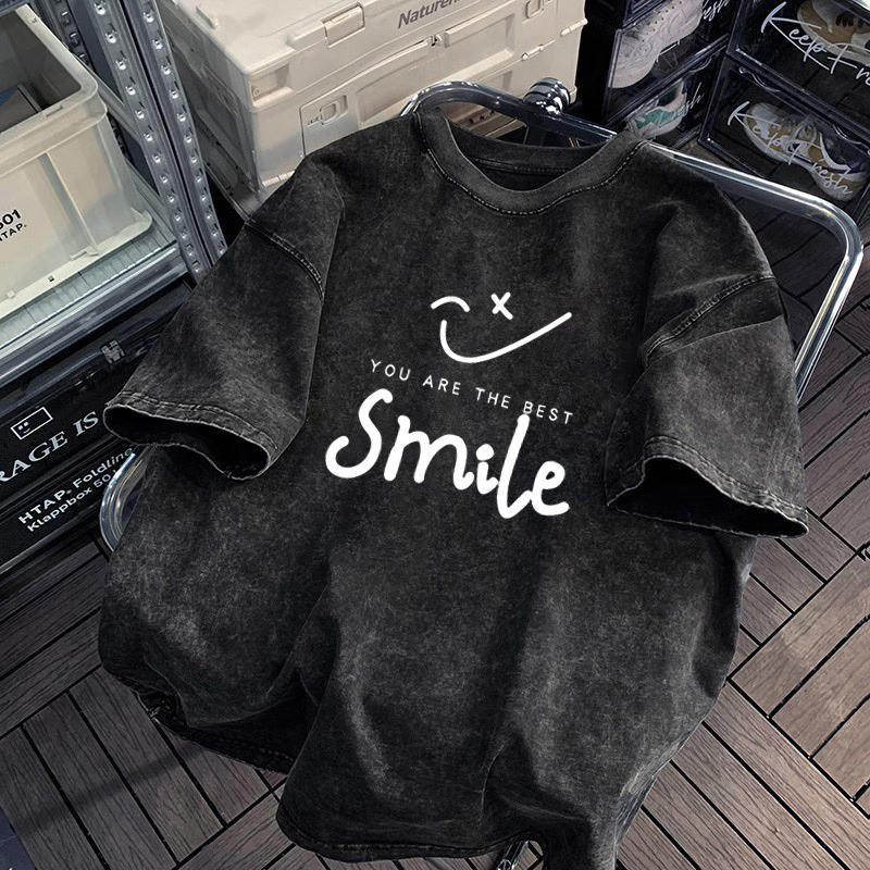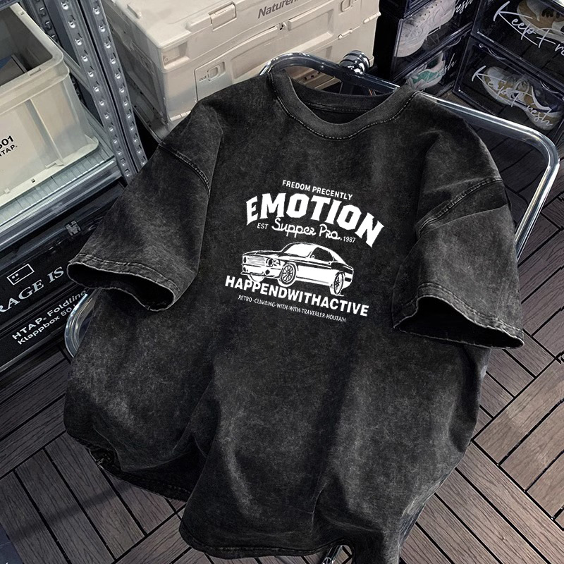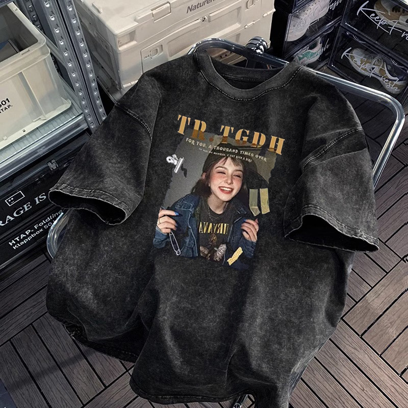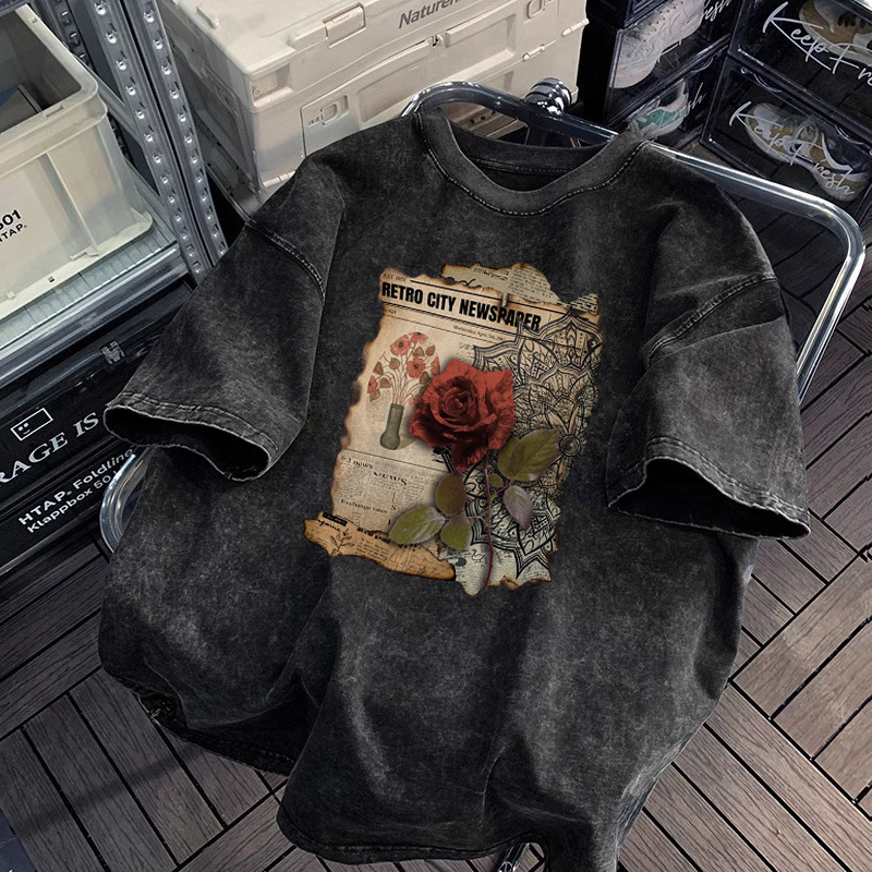 嘻哈风水洗做旧重磅短袖T恤男女夏季oversize复古潮牌宽松慵懒感