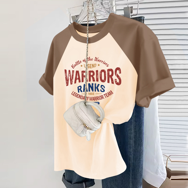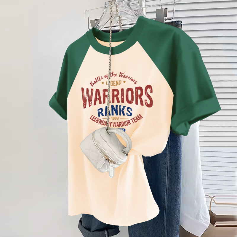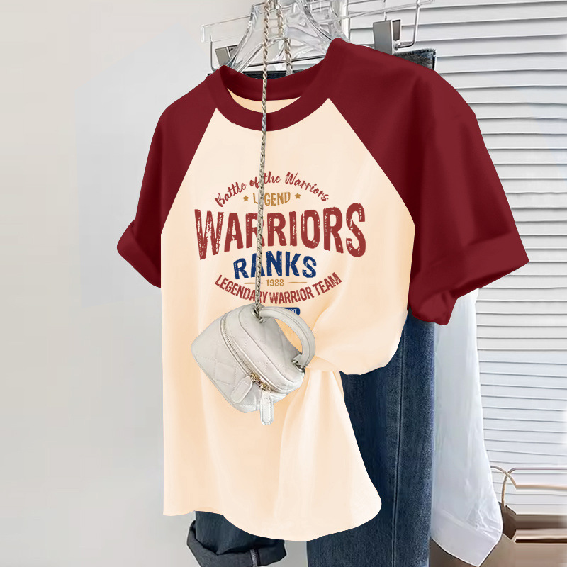 2025新款夏季撞色插肩纯棉短袖t恤女ins时尚百搭减龄显瘦上衣胖mm