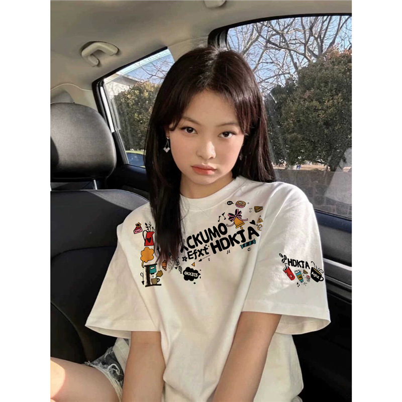 300斤纯棉白色正肩短袖t恤女2025新款学生夏季宽松设计感美式上衣