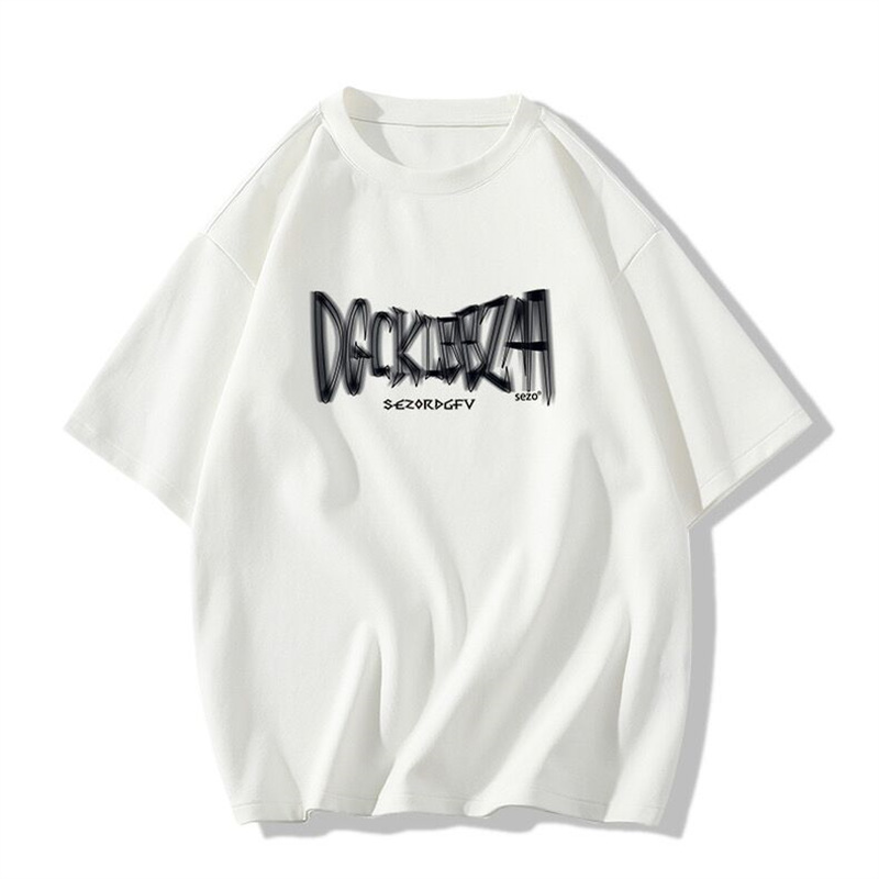 韩版U领字母抽绳印花小众设计感短袖T恤衫女夏季新款百搭上衣