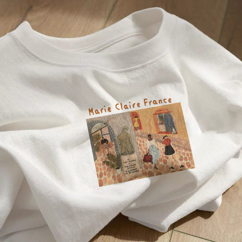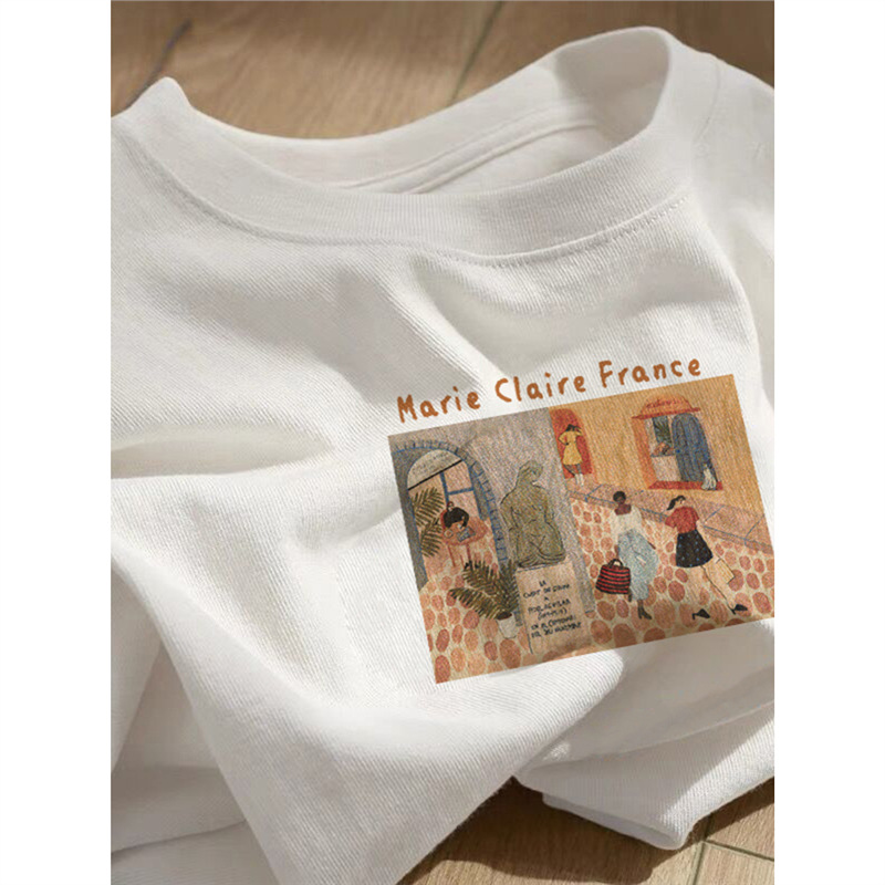 纯棉白色t恤女短袖大码宽松夏季港味chic高级感漂亮别致字母上衣