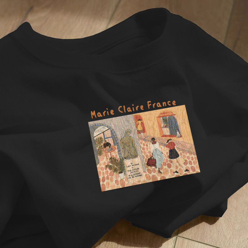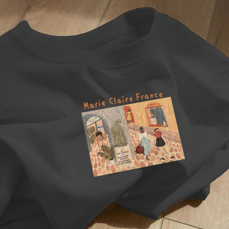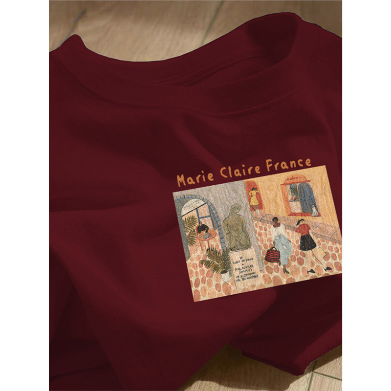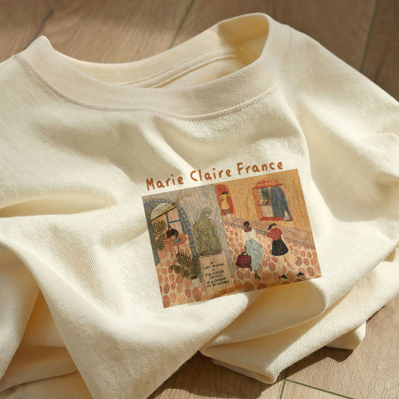 美式纯棉正肩t恤女夏季设计感小众女装短袖体恤港味复古chic上衣