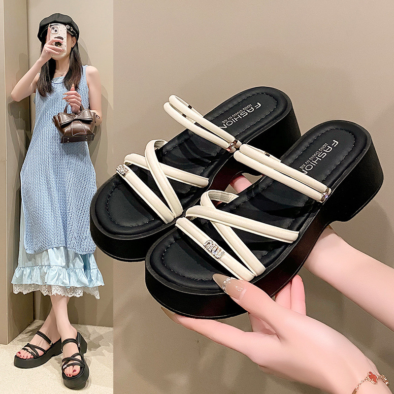 厚底拖鞋女2025新款夏季外穿感时尚百搭仙女风松糕一字凉拖凉鞋