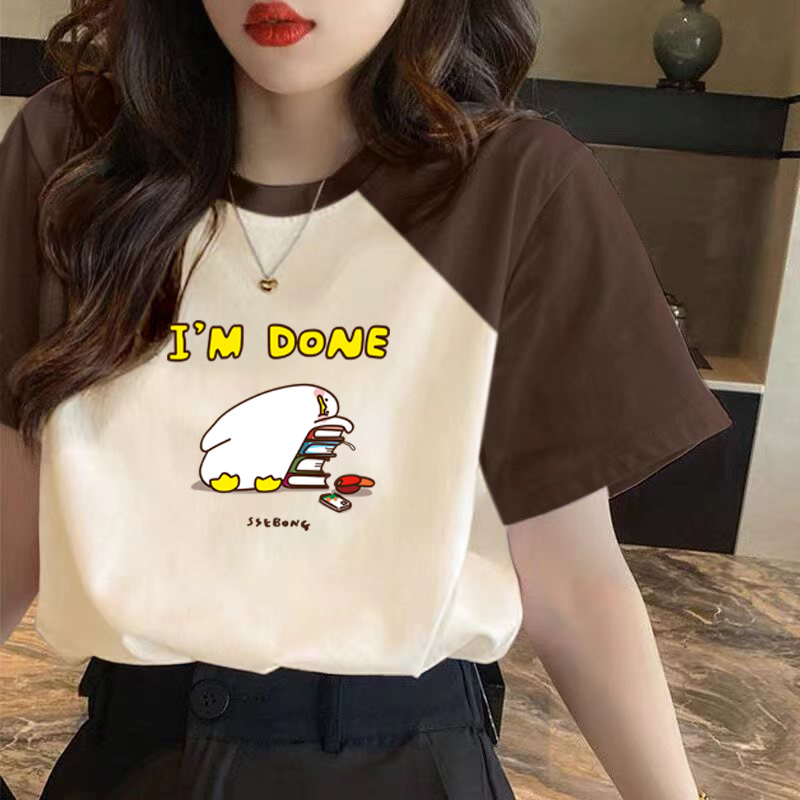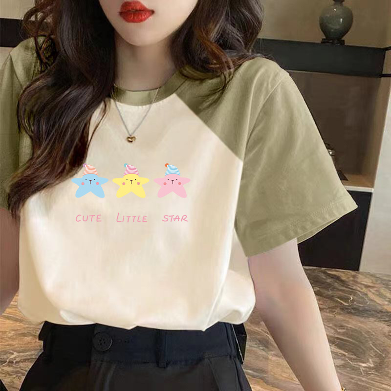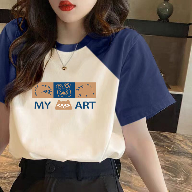 小众别致百搭插肩袖上衣夏季宽松纯棉短袖t恤女洋气大码设计感ins