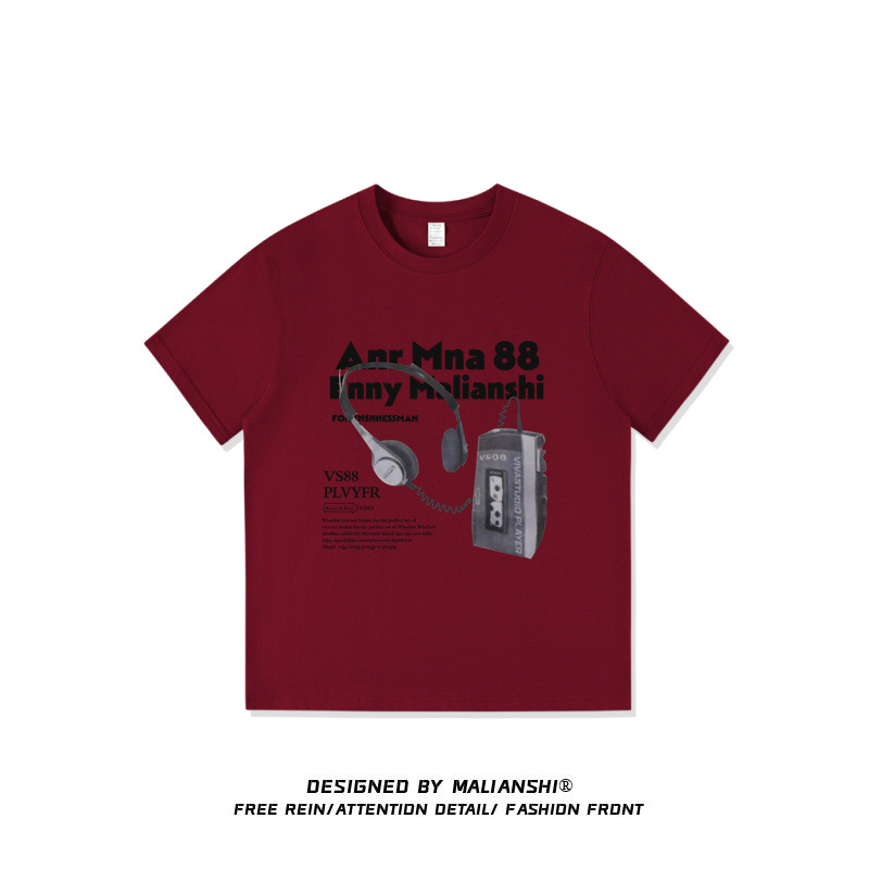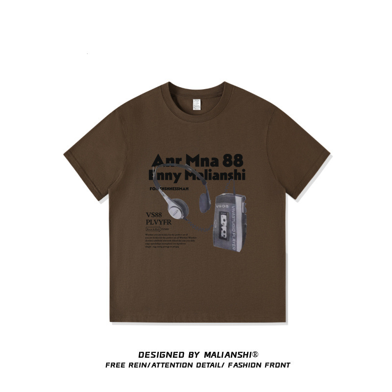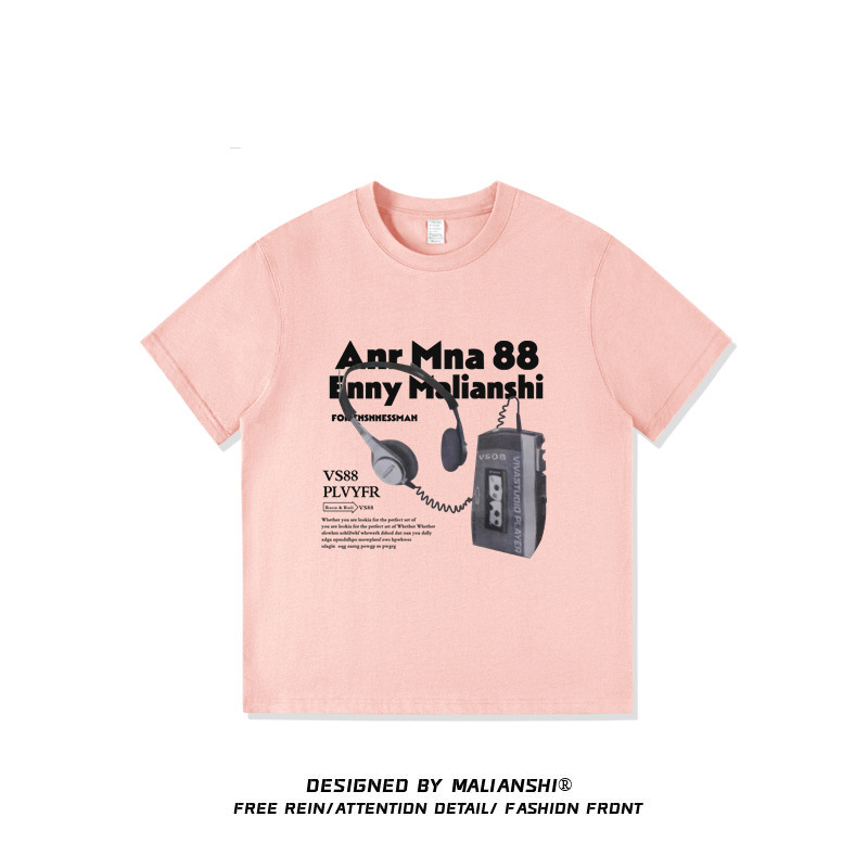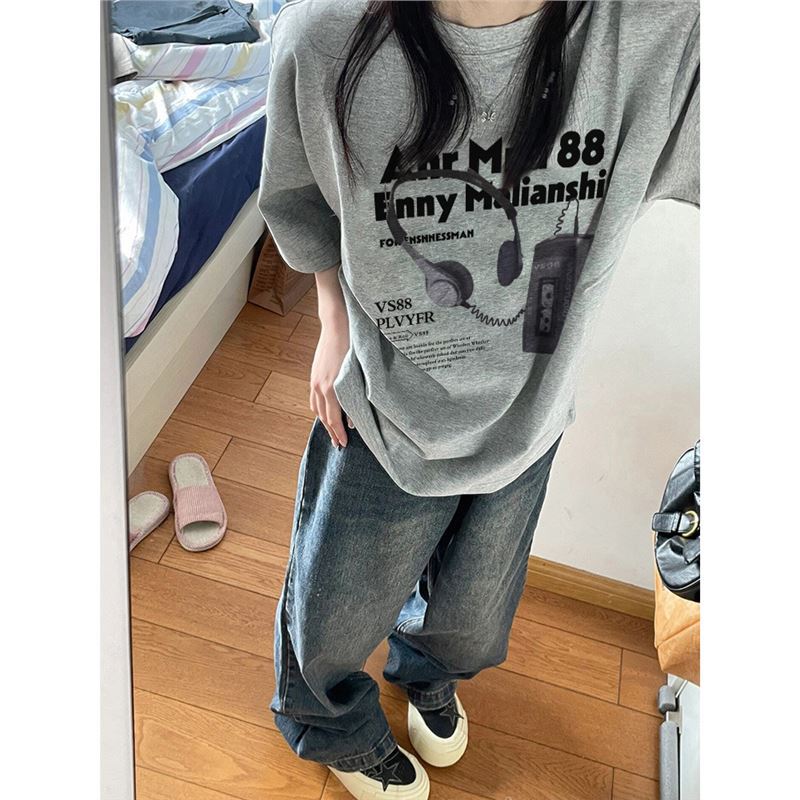 100%纯棉大码美式oversize短袖t恤女2025新款设计感小众印花上衣
