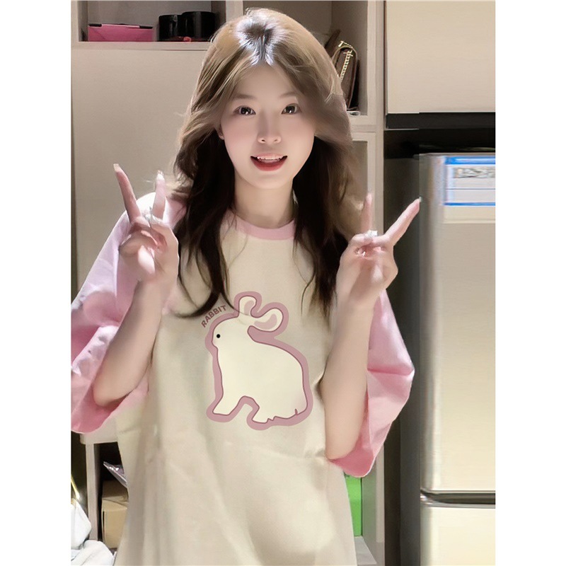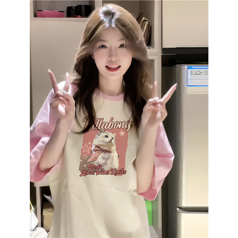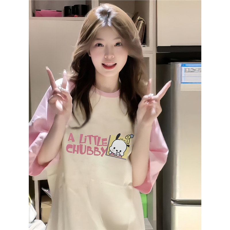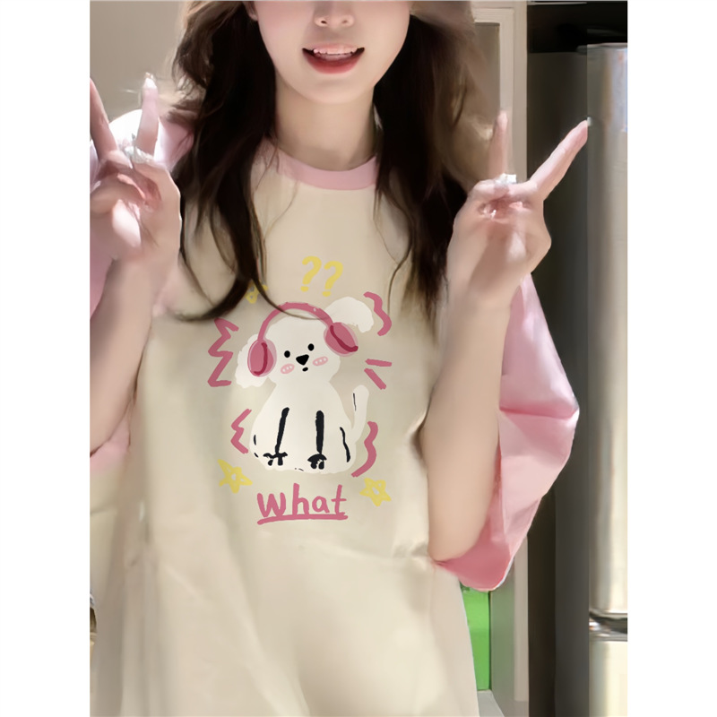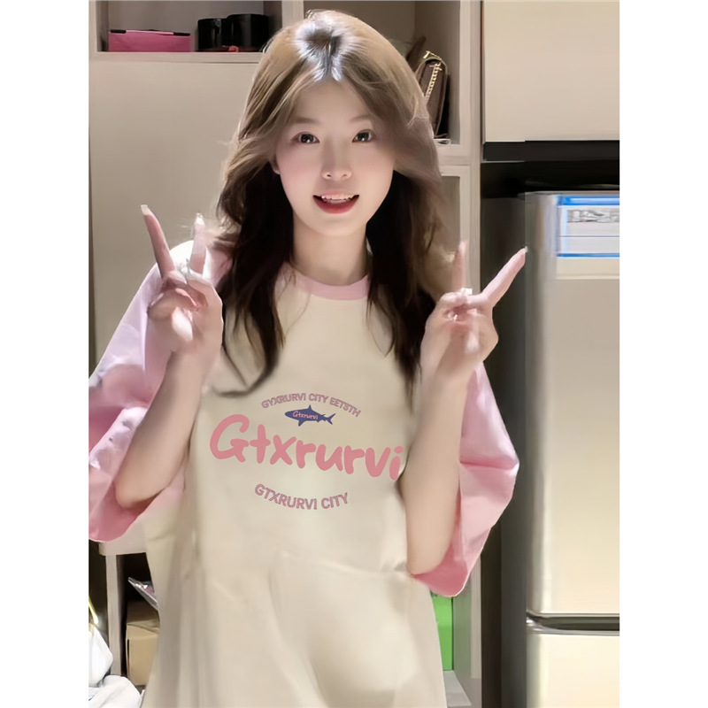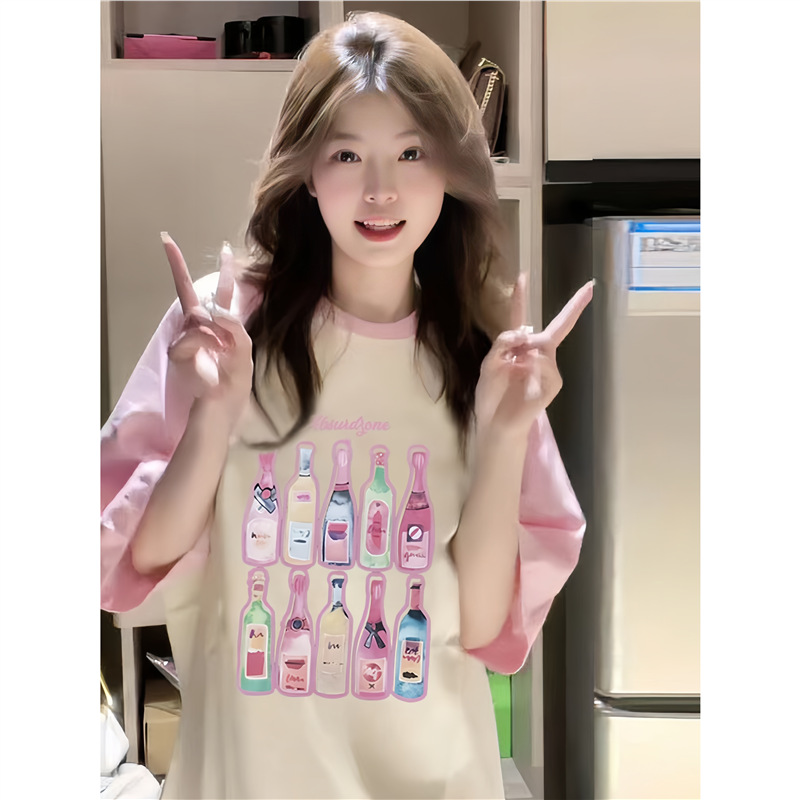 200斤粉色插肩短袖t恤女大童夏装女大学生多巴胺宽松半袖上衣