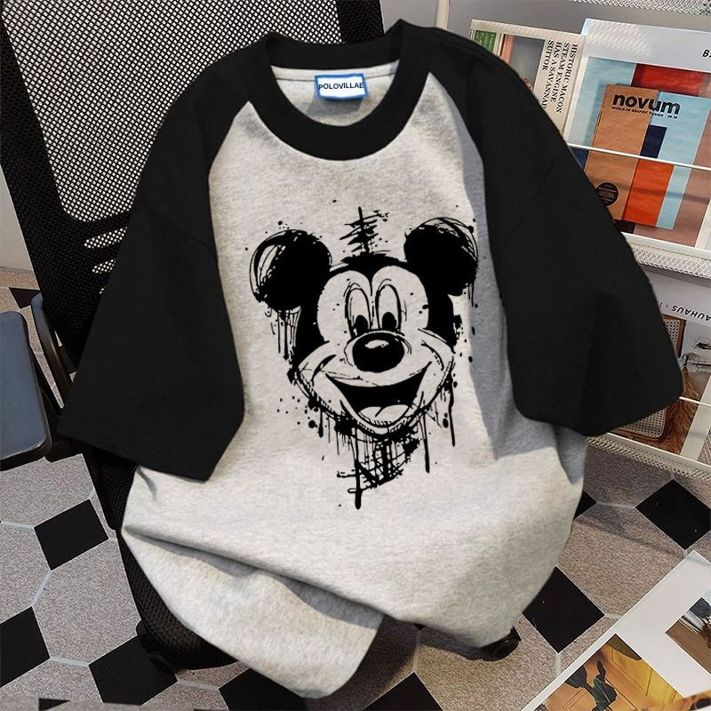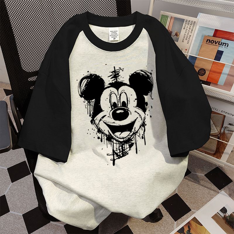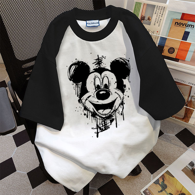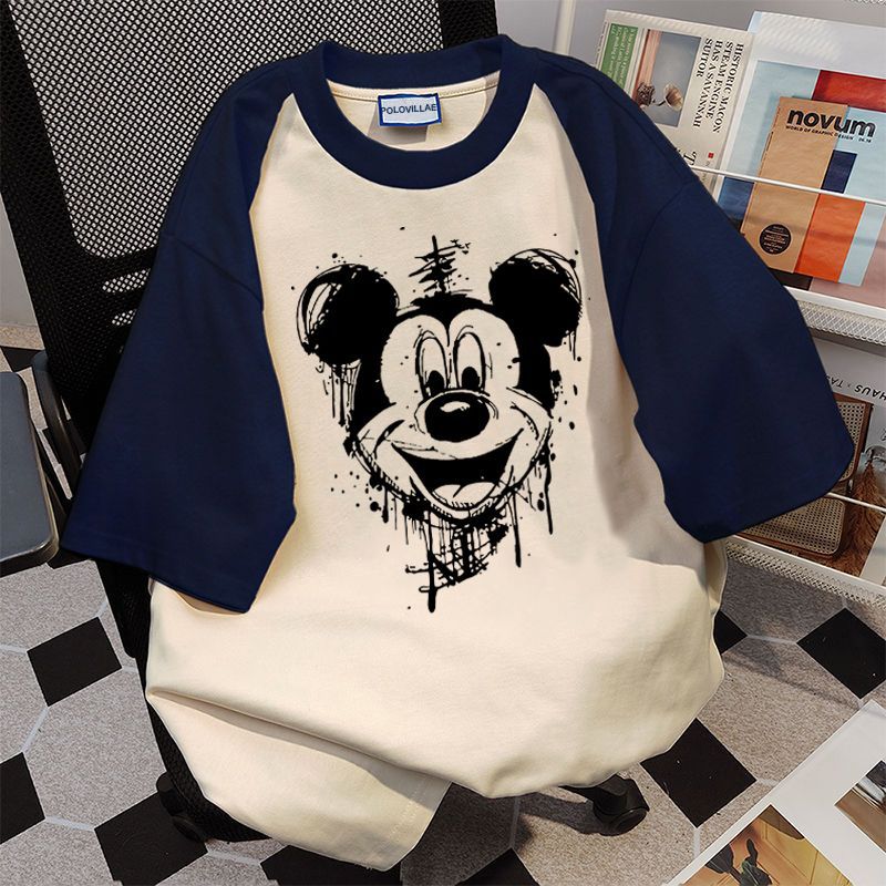 加大码300斤纯棉韩版别致撞色插肩短袖t恤学生夏季宽松港味上衣潮