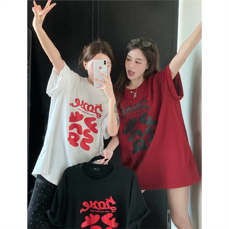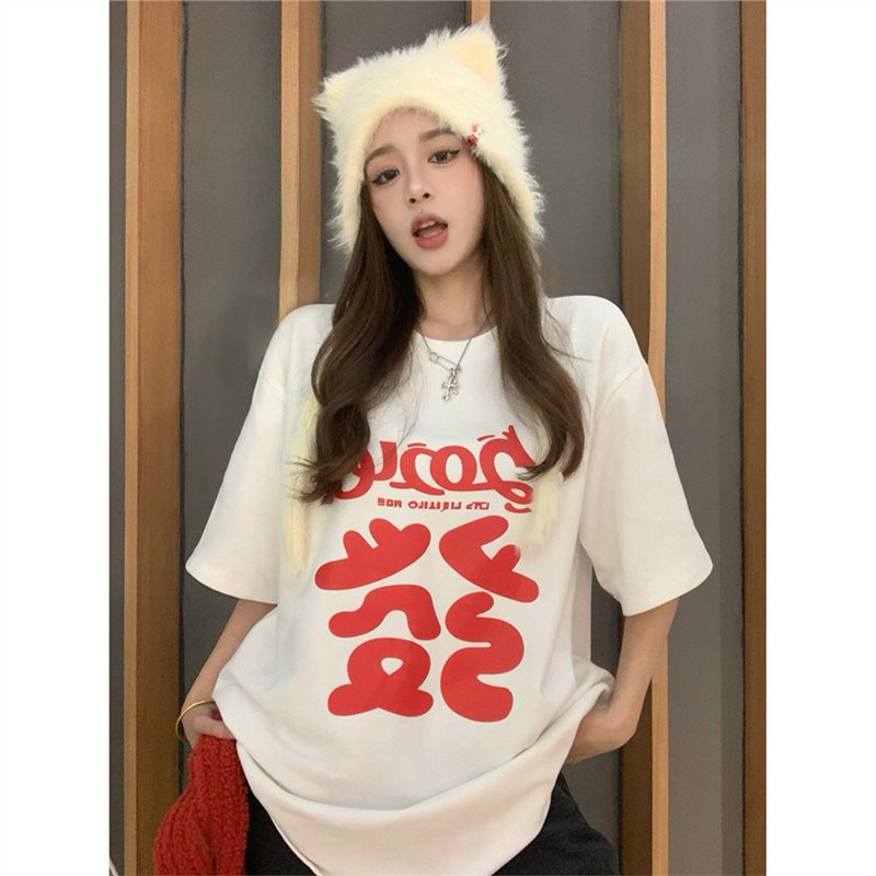 美式复古印花纯棉短袖t恤女夏季情侣宽松胖妹妹mm设计感上衣ins潮