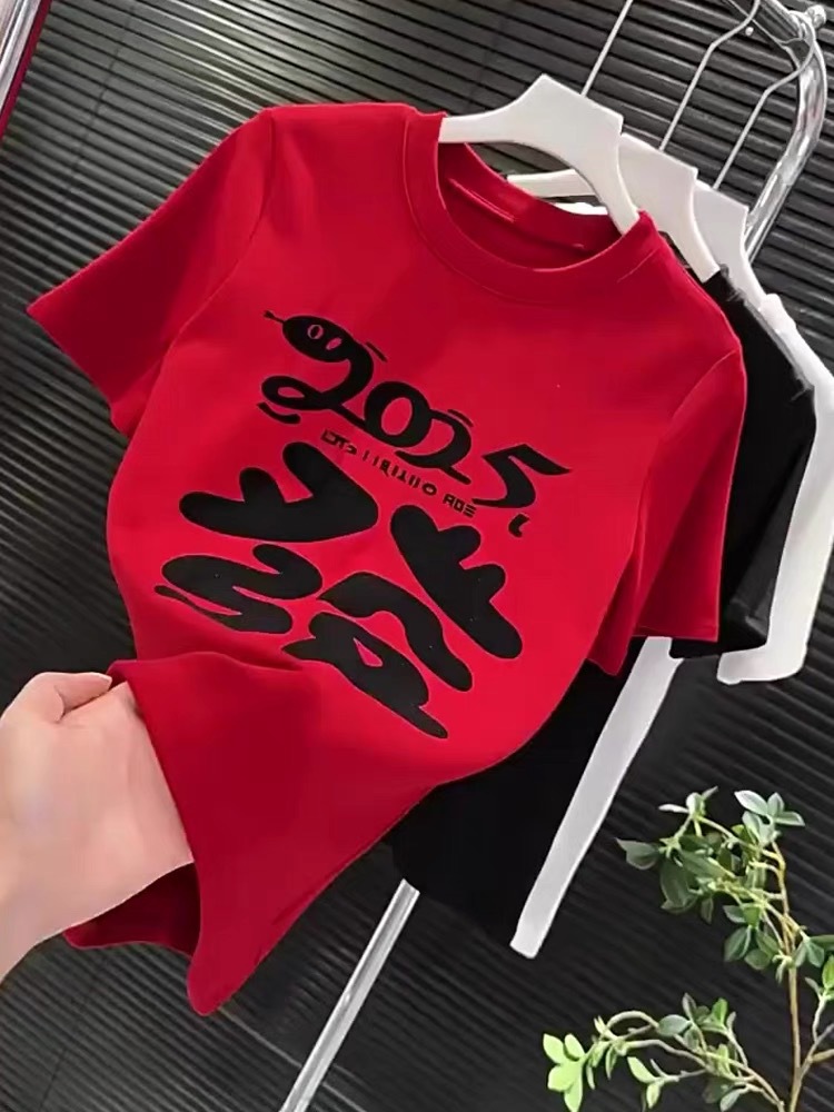 设计感字母印花露肩T恤女2025夏季新款休闲宽松中长款学生上衣女