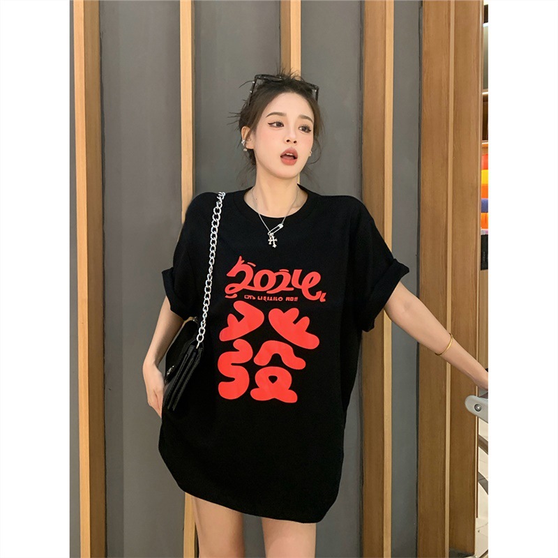 2025纯棉短袖T恤女韩版宽松大尺码中长版简约时尚百搭打底上衣夏