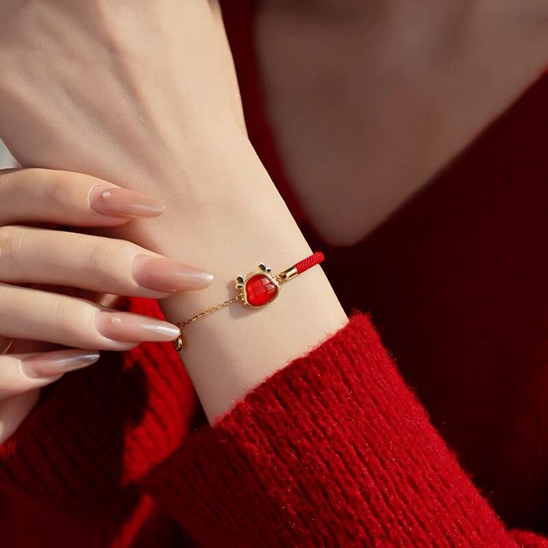 S925纯银龙年本命年红绳手链女轻奢小众红玛瑙生肖龙手绳新年礼物