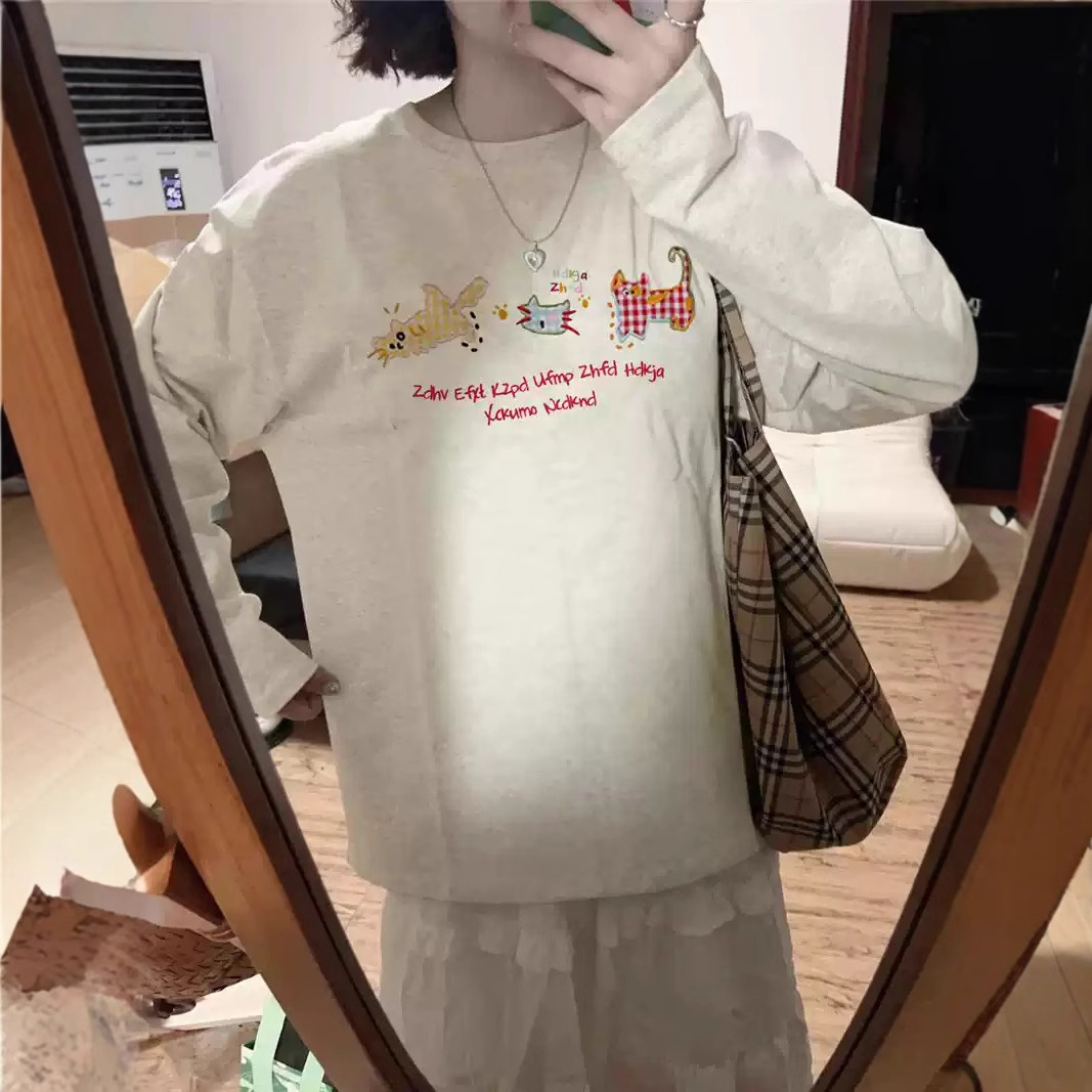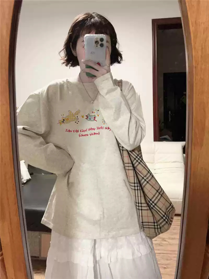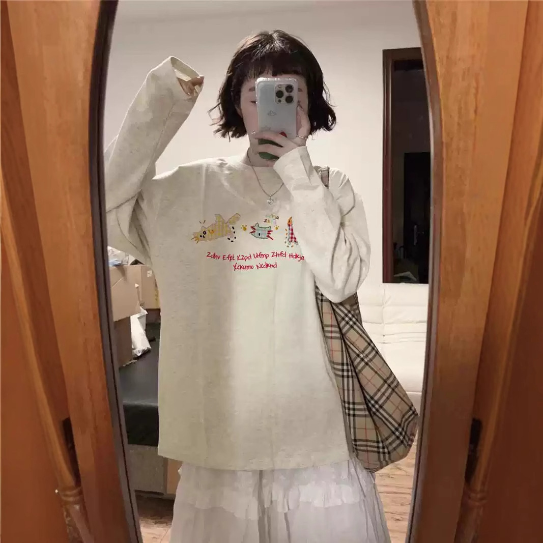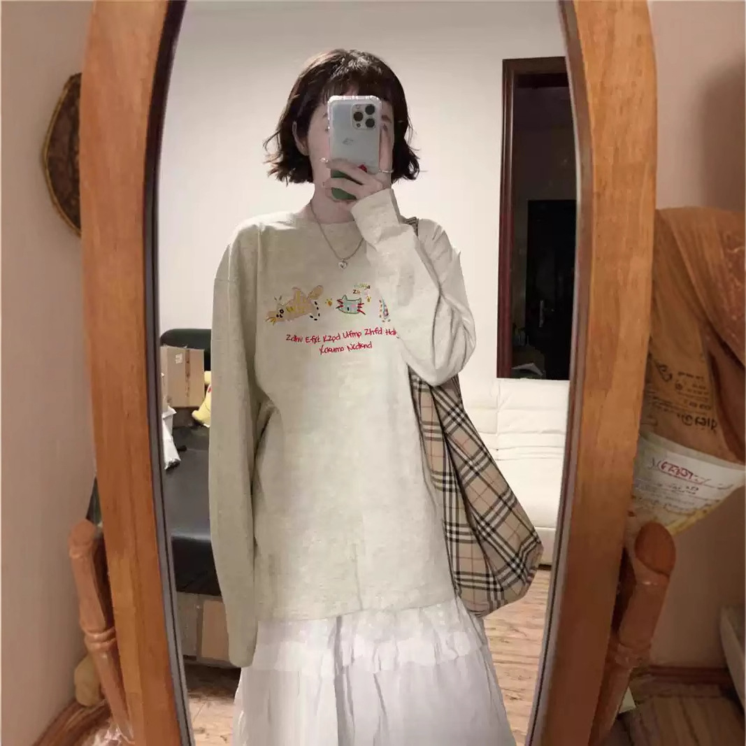 春秋纯棉长袖t恤女新款爆款早秋chic上衣灰色宽松内搭打底衫